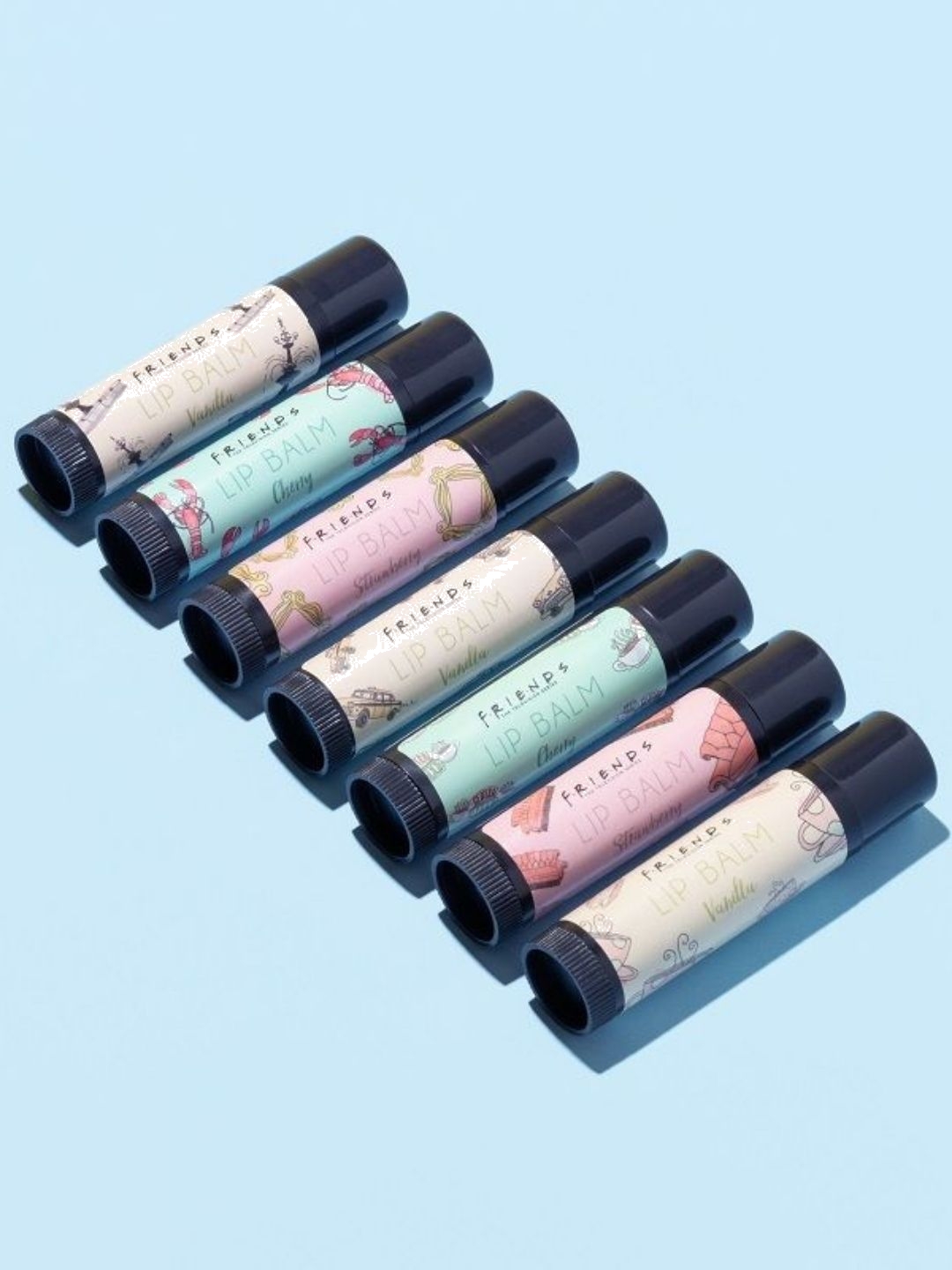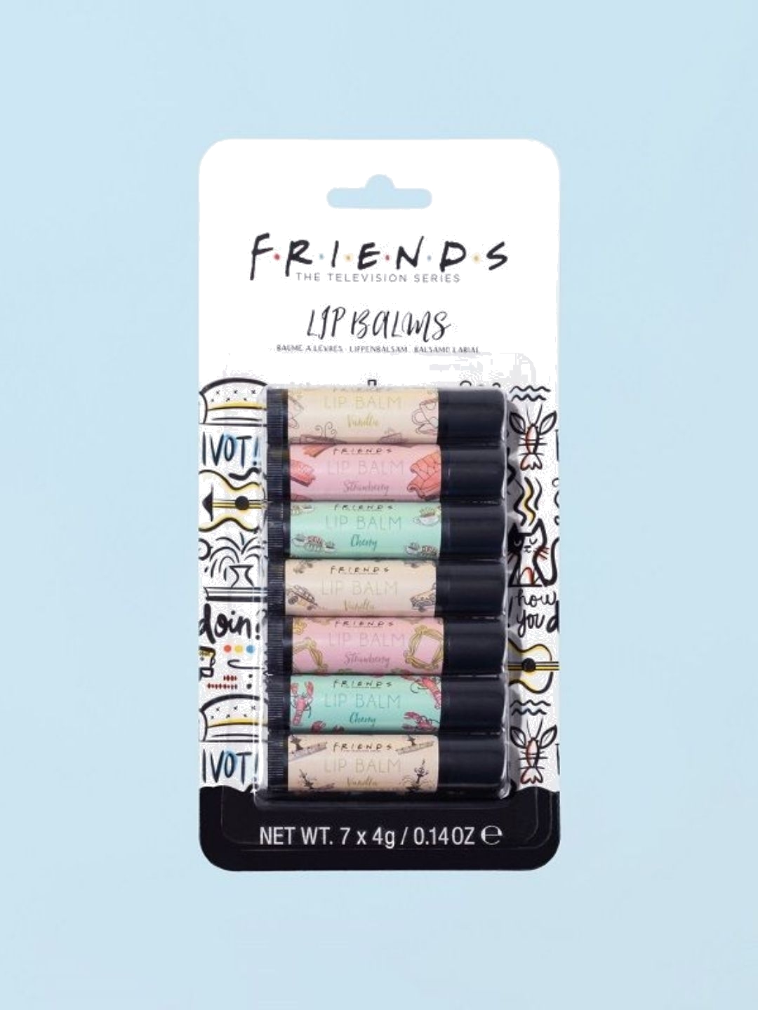 Η συλλογή Lip Balm Friends 7 Days περιλαμβάνει 7 διαφορετικά lip balms σε τρεις γεύσεις: 3 x Βανίλια, 2 x Φράουλα και 2 x Κεράσι, με κάθε σωληνάριο να ζυγίζει 4γρ (0.14oz). Αυτή η συλλογή είναι σίγουρο ότι θα ενθουσιάσει τους φίλους της σειράς Friends. Τα χείλη μας είναι συνεχώς εκτεθειμένα, είτε στον παγωμένο χειμώνα είτε στη ζέστη του καλοκαιριού. Χρησιμοποιώντας lip balm μπορούμε να αποτρέψουμε το σκάσιμο και να διασφαλίσουμε ότι το χαμόγελό μας θα παραμείνει άνετο και χωρίς ενοχλήσεις. Αφού περιέχει επτά ατομικά σωληνάρια, μπορείτε να έχετε πάντα ένα στην τσάντα σας, την τσέπη σας, την τσάντα του γυμναστηρίου, το κομοδίνο, το αυτοκίνητο, το σπίτι ή το γραφείο σας, εξασφαλίζοντας ότι δεν θα μείνετε ποτέ χωρίς lip balm όταν το χρειάζεστε περισσότερο, αποφεύγοντας το σκίσιμο και το ξεφλούδισμα των χειλιών.