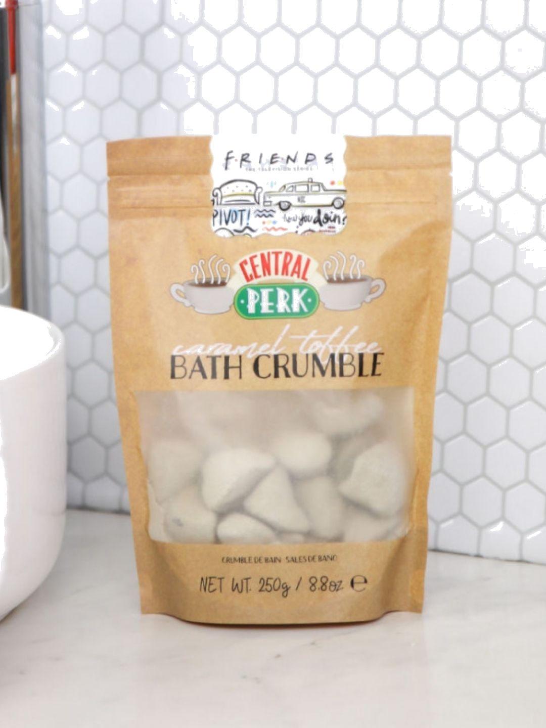 Ανακαλύψτε την απόλυτη εμπειρία μπάνιου με το Friends Central Perk Bath Crumble. Αυτό το αφρόλουτρο με άρωμα καραμέλας και νότες βανίλιας δημιουργεί έναν κρεμώδη και γλυκό αφρό, προσφέροντας μια αναζωογονητική εμπειρία. Εμπλουτισμένο με βούτυρο καριτέ, θα ενυδατώσει και θα μαλακώσει το δέρμα σας, κάνοντάς το πιο απαλό και φρέσκο από ποτέ. Χαλαρώστε στην μπανιέρα και απολαύστε το τέλειο μπάνιο με το Friends Bath Crumble, το οποίο είναι η ιδανική επιλογή για περιποίηση σώματος και μπάνιου. Σχεδιασμένο με έμπνευση από την κωμωδία Friends, αυτό το προϊόν σίγουρα θα φέρει χαμόγελα σε κάθε φανατικό της σειράς.