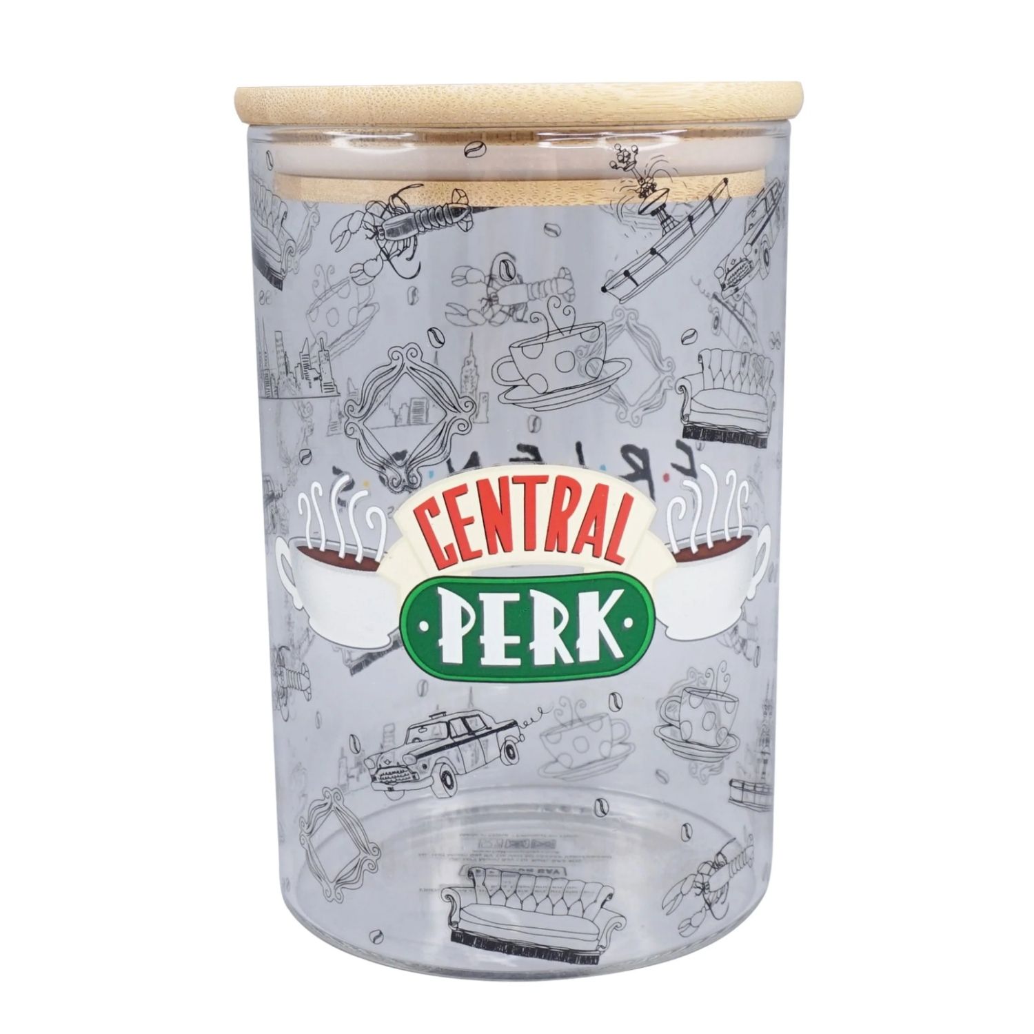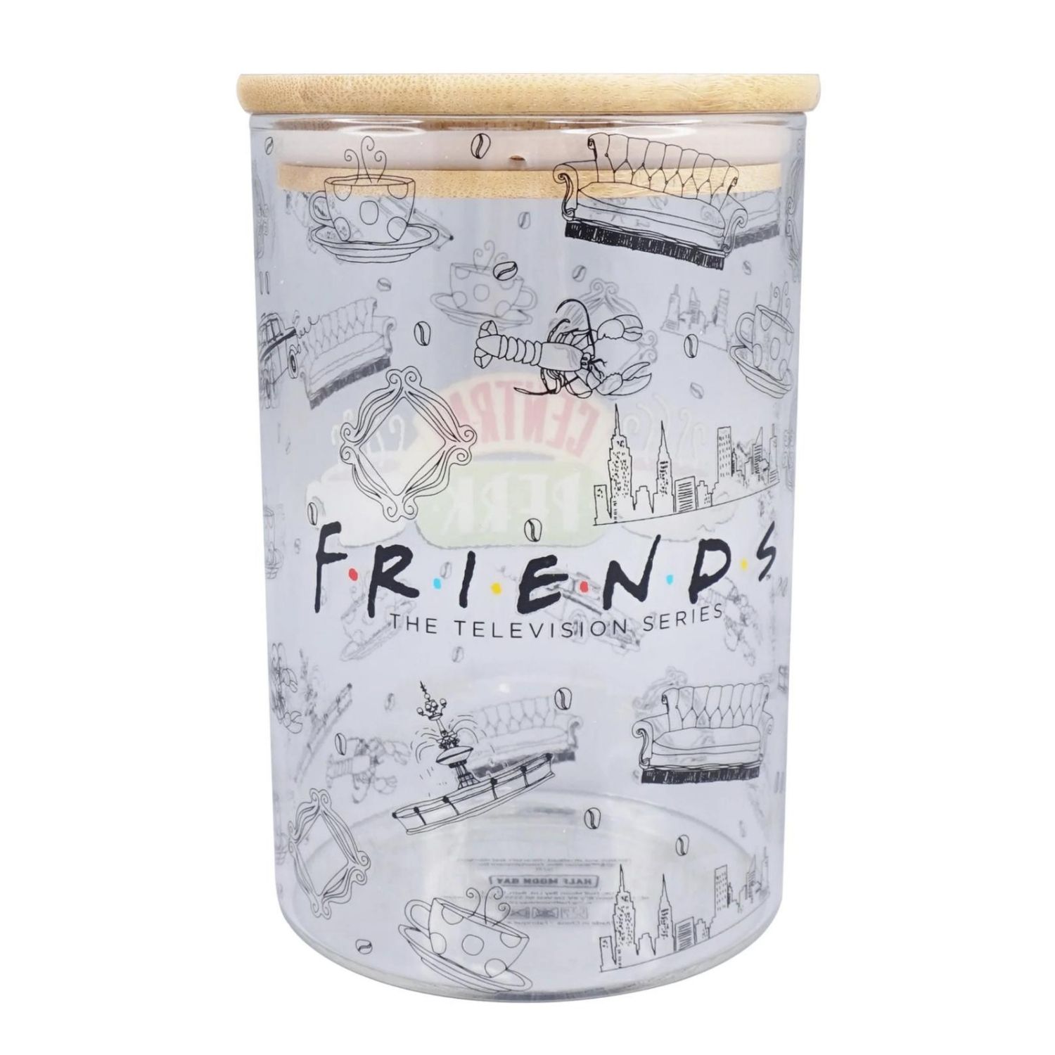 Ανακαλύψτε το Γυάλινο Βάζο Friends και προσθέστε λίγη μαγεία από το Central Perk στην κουζίνα σας! Το βάζο είναι φτιαγμένο από γυαλί με καπάκι από συμπιεσμένο μπαμπού και έχει χωρητικότητα 950ml, ιδανικό για να αποθηκεύετε τα αγαπημένα σας σνακ ή μικροαντικείμενα. Οι διαστάσεις του είναι 17,5 εκ. (ύψος) x 11 εκ. (πλάτος) x 11 εκ. (βάθος) και είναι το ιδανικό δώρο για τους φανατικούς της σειράς Friends.