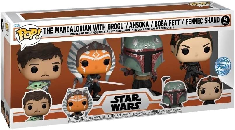 Αυτή η ειδική έκδοση περιλαμβάνει ένα σετ 4 φιγούρων Funko Pop! εμπνευσμένων από το Star Wars: The Mandalorian, ιδανικό για συλλέκτες και φαν της σειράς. Το σετ περιλαμβάνει τις φιγούρες: The Mandalorian με τον Grogu, Ahsoka, Boba Fett και Fennec Shand, όλες κατασκευασμένες με την γνωστή ποιότητα και λεπτομέρεια των Funko Pop! Vinyl Figures.