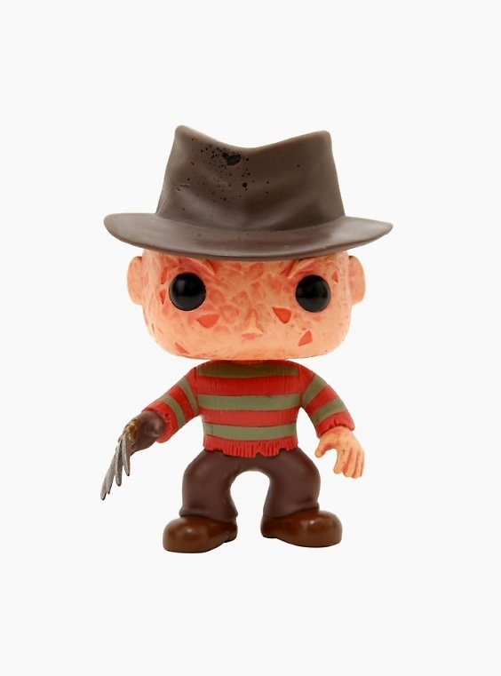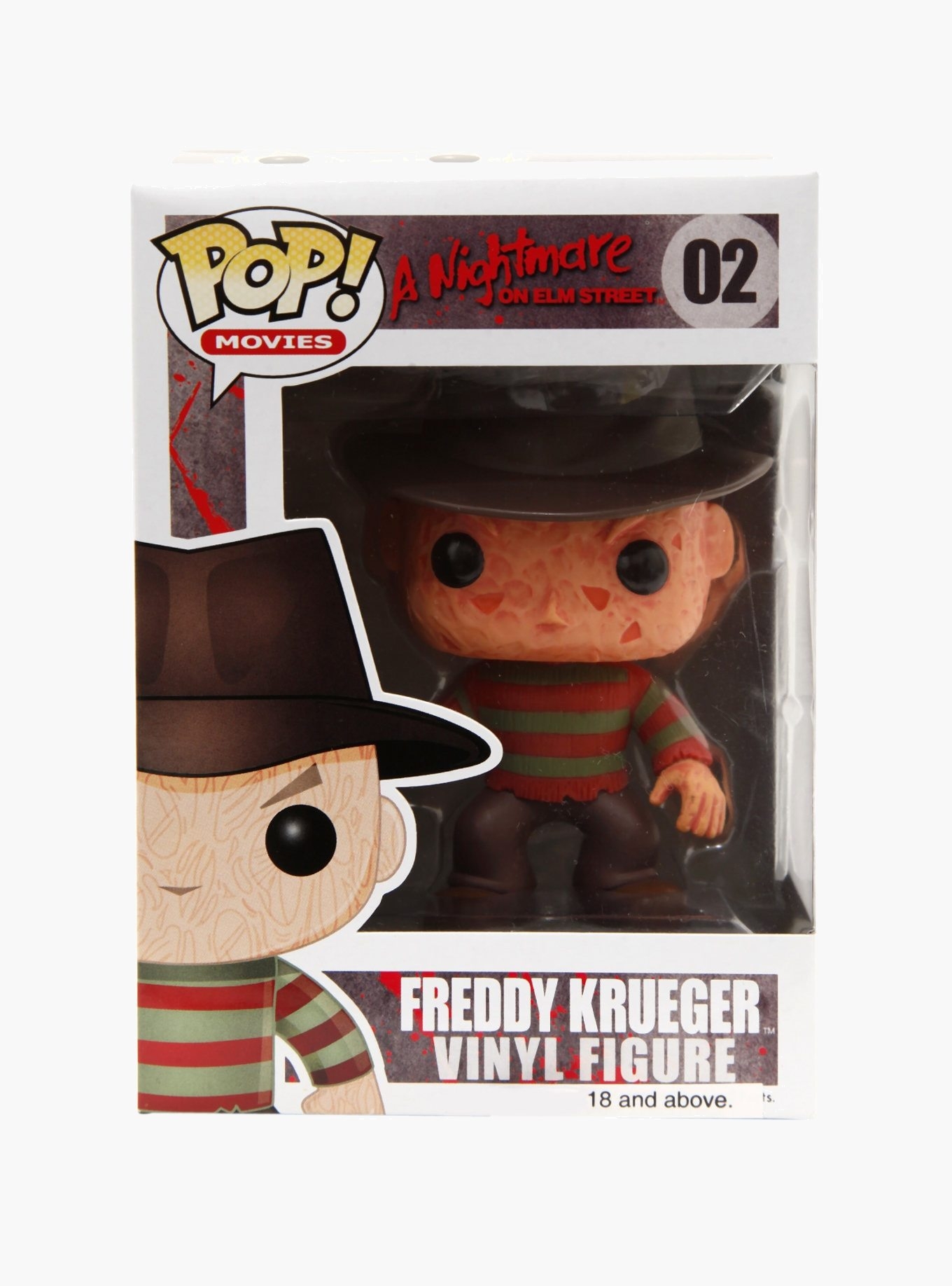 Αυτή η συλλεκτική φιγούρα Pop! είναι η δεύτερη που κυκλοφόρησε ποτέ στη σειρά Pop! Movies, αποδίδοντας τον Freddy Krueger με το χαρακτηριστικό του ριγέ πουλόβερ, καπέλο, γάντι με λεπίδες και καμένη επιδερμίδα.