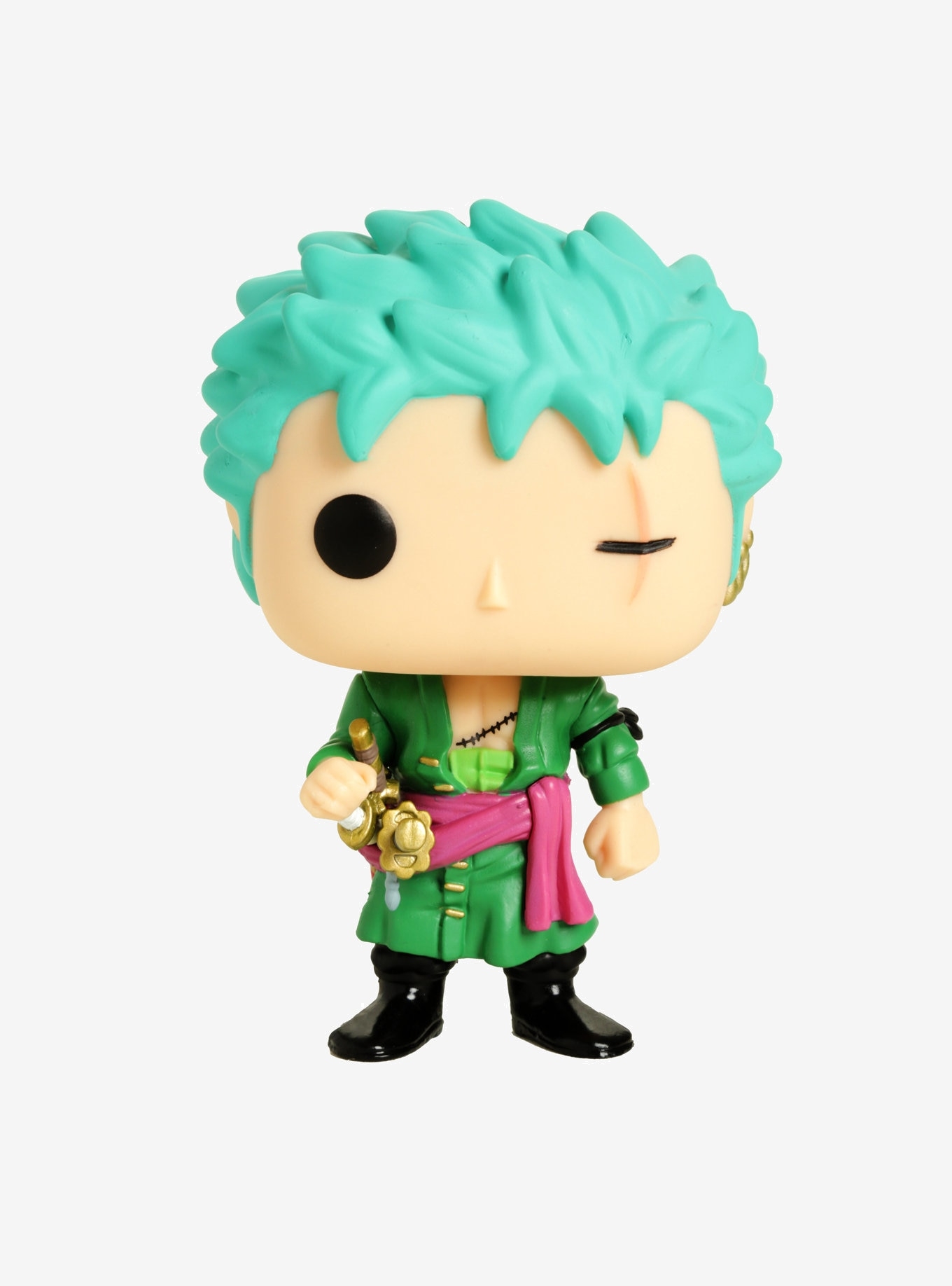 Αυτή η φιγούρα Pop! απεικονίζει τον Roronoa Zoro, γνωστός και ως "Pirate Hunter" Zoro, έναν πειρατή και πρώην επικηρυγμένο κυνηγό κεφαλών.