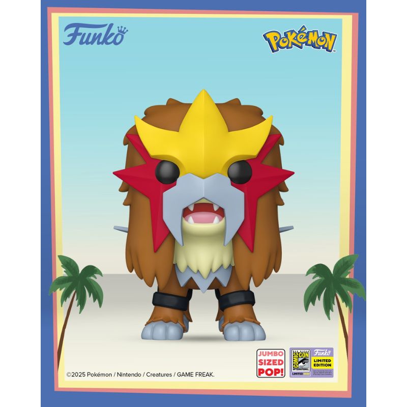 Αυτή η ειδική έκδοση κυκλοφόρησε αποκλειστικά για τη San Diego Comic-Con, καθιστώντας την μια εξαιρετικά περιορισμένη και συλλεκτική φιγούρα για τους λάτρεις του Pokémon και της Funko. Η φιγούρα παρουσιάζει τον Entei με εκπληκτικές λεπτομέρειες και έντονα χρώματα, ενώ το μέγεθός της Jumbo την κάνει να ξεχωρίζει σε κάθε συλλογή.