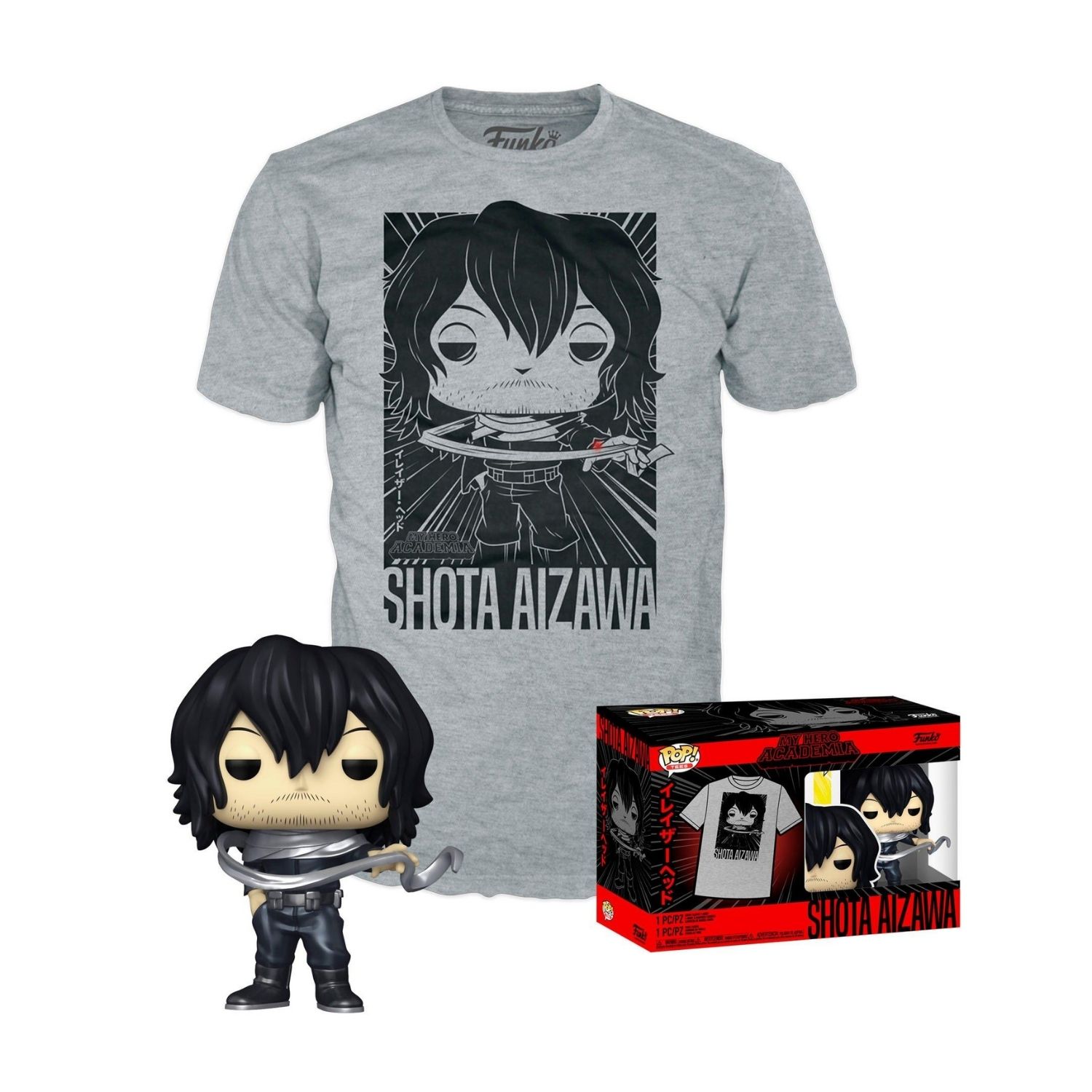 Γίνετε μέλος της U.A. High School με το Funko Pop! & T-Shirt σε συνεργασία με τον Shota Aizawa! Ο Shota Aizawa είναι ένας από τους πιο δυνατούς καθηγητές στο σχολείο και μάχεται ακυρώνοντας τη δύναμη του αντιπάλου του, προτού τον παγιδεύσει με το όπλο σύλληψης του. Το T-shirt Shota Aizawa είναι φτιαγμένο από 100% βαμβάκι και συνδυάζεται τέλεια με όλα τα casual παντελόνια, ενώ μπορεί να φορεθεί κάτω από σακάκια ή πουκάμισα με μακριά μανίκια για επιπλέον στυλ. Στη συσκευασία περιλαμβάνεται και η φιγούρα Funko Pop! του Shota Aizawa, με τον ήρωα να είναι έτοιμος για μάχη με το όπλο σύλληψης του. Αυτό το σετ θα είναι ιδανικό για οποιονδήποτε θέλει να δείξει την υποστήριξή του για τον ήρωα και καθηγητή του My Hero Academia!