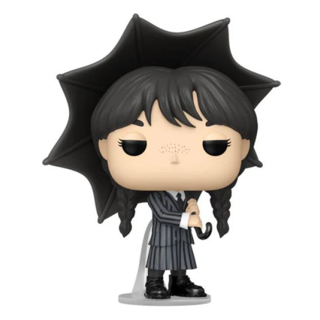 Αυτή η Ειδική Έκδοση Funko Pop! αναπαριστά τη Wednesday Addams από τη δημοφιλή σειρά Netflix Wednesday (2022), σε δημιουργία του Tim Burton. Η φιγούρα αποτυπώνει τέλεια την χαρακτηριστική αδιάφορη έκφραση της Wednesday, το γκρίζο ομπρελάκι και τη γνωστή μαύρη σχολική στολή, που αντανακλούν τη σκοτεινή και μυστηριώδη προσωπικότητά της.