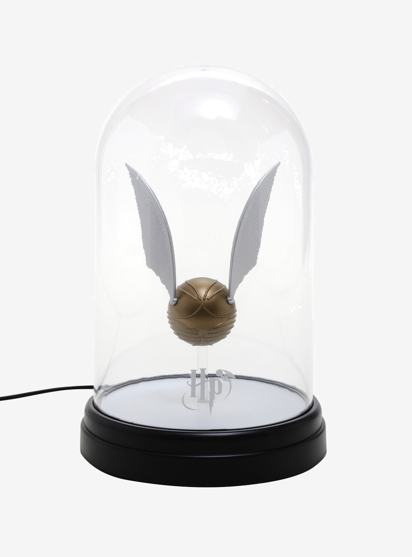 Ανακαλύψτε τo φωτιστικό Golden Snitch και αφήστε το φως της να αναδείξει τη μαγεία του κόσμου του Harry Potter στο δωμάτιό σας! Αυτό το φωτιστικό διαθέτει τη Golden Snitch να αιωρείται μέσα σε μια ψηλή, φωτισμένη γυάλα. Παρακολουθήστε τη Snitch να λάμπει όταν ανάβει το φως και φωτίστε το γραφείο, το κομοδίνο ή τις ράφια σας με αυτό το μαγευτικό αντικείμενο.