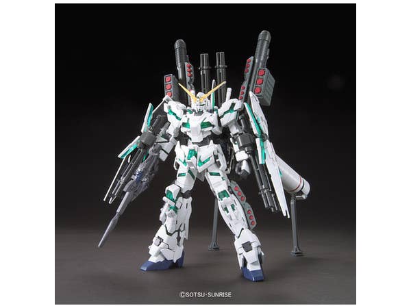 Μην τολμήσετε να προκαλέσετε τον Full Armor Unicorn Gundam σε Destroy Mode! Είναι εξοπλισμένο με αρκετά όπλα για να εξοπλίσει έναν μικρό στρατό: δύο hyper bazookas, το Beam Magnum, τέσσερα Beam Sabers, δύο λεπίδες Beam Saber, δύο αντιαρματικούς πυραύλους, δύο εκτοξευτές χειροβομβίδων, τέσσερις εξάμετρες χειροβομβίδες, έξι Beam Gatling Guns, την ασπίδα του σε αποθηκευμένη κατάσταση και τρεις επεκτεινόμενες ασπίδες, δύο μεγάλους boosters, μια λαβή για τουφέκι και δύο χέρια για κράτημα.