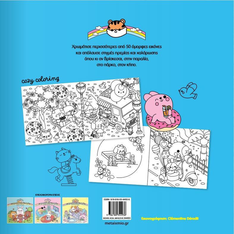 Χρωμάτισε περισσότερες από 50 όμορφες εικόνες και απόλαυσε στιγμές ηρεμίας και χαλάρωσης όπου κι αν βρίσκεσαι — είτε στην παραλία, είτε στο πάρκο, είτε στον κήπο. Αυτό το βιβλίο σε καλεί να βρεις τον χρόνο να ξεφύγεις από την καθημερινότητα και να απολαύσεις δημιουργικά στιγμές χαλάρωσης μέσα στη φύση και τον ήλιο.
