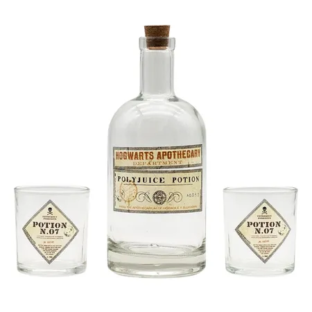 Polynectar, Potion N.07 ή απλώς μια καλή λεμονάδα; Ετοιμάστε και απολαύστε το αγαπημένο σας ρόφημα με αυτό το υπέροχο σετ μπουκαλιού και δύο ποτηριών Harry Potter από την ABYstyle! Το σετ αποπνέει την αίσθηση ενός μαγικού εργαστηρίου, με μοναδική αισθητική που θυμίζει φίλτρα και ελιξίρια από τον κόσμο των μάγων. Το γυάλινο μπουκάλι έχει χωρητικότητα 750ml, ιδανικό για σερβίρισμα, ενώ τα δύο ποτήρια των 200ml προσφέρουν την τέλεια ποσότητα για κάθε μαγική γουλιά. Προσοχή όμως στην παρασκευή... γιατί ένα λάθος μπορεί να έχει απρόβλεπτες συνέπειες!