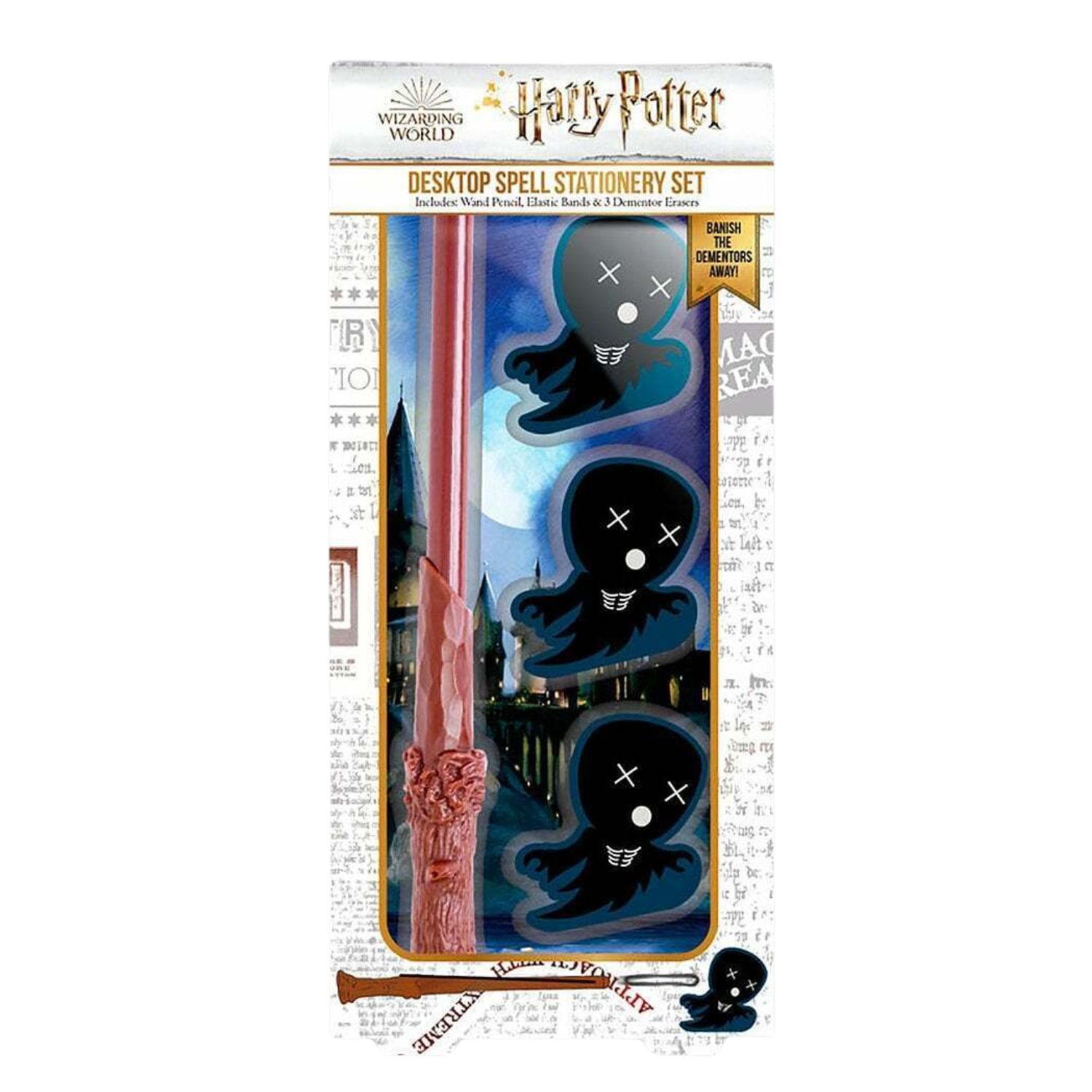 Ανακαλύψτε τη μαγεία στον χώρο εργασίας σας με το Harry Potter Desktop Spell Set! Χρησιμοποιήστε το ραβδί του Χάρι ως μολύβι και τα λαστιχάκια για να ρίξετε τις τρείς γόμες σε σχήμα Dementor. Ένα μοναδικό σετ γραφείου για κάθε φαν του Χάρι Πότερ, που συνδυάζει τη μαγεία με τη δημιουργικότητα!