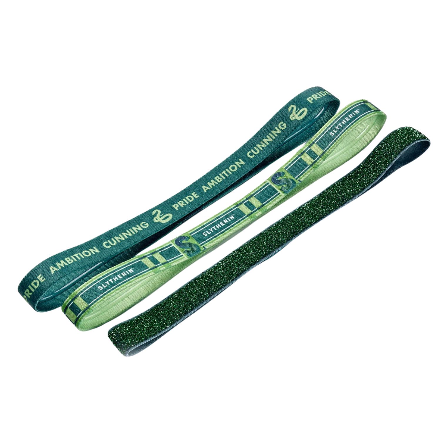 - Σετ από τρεις ελαστικές κορδέλες μαλλιών με θέμα τον κοιτώνα Σλίθεριν.