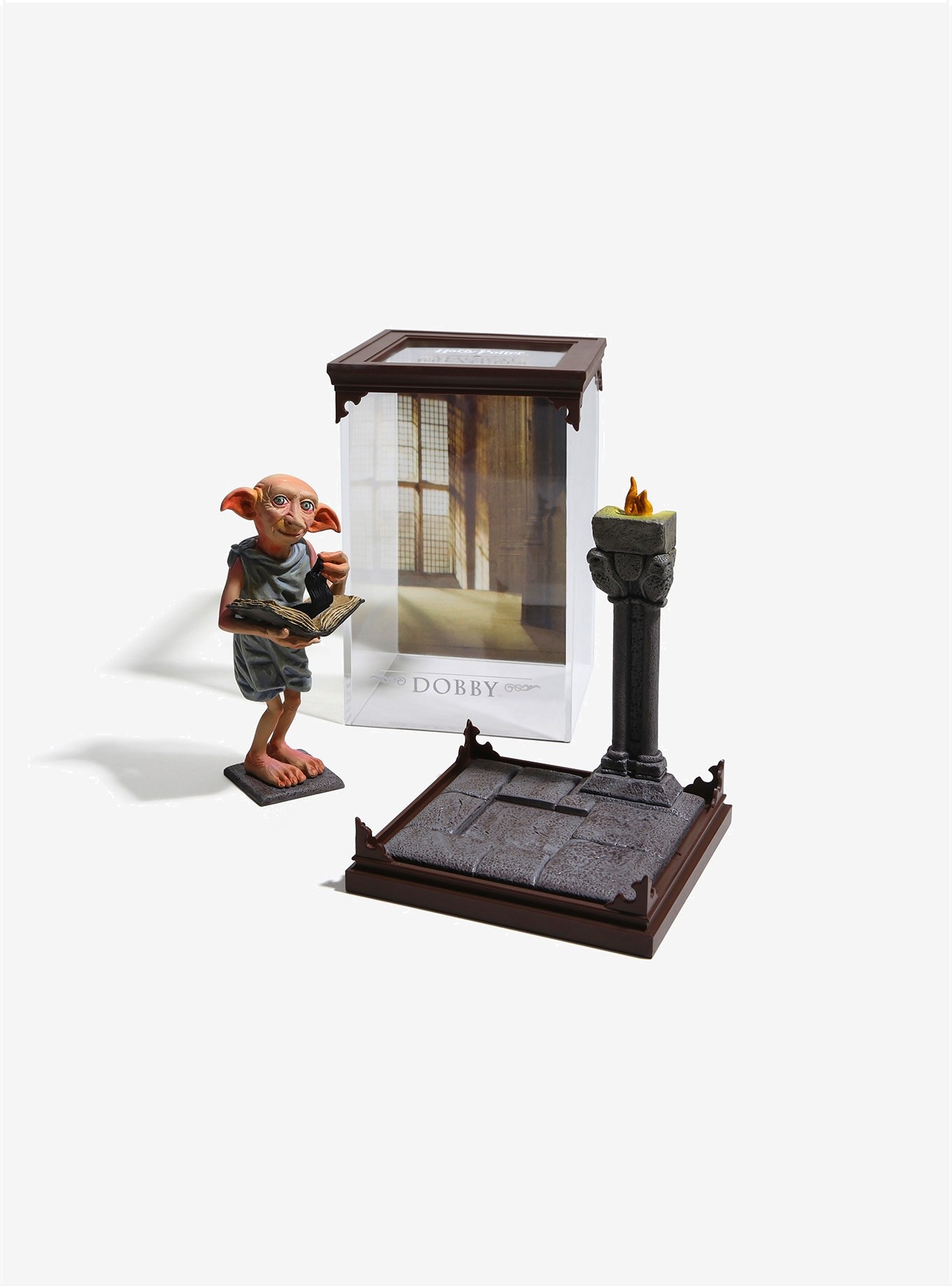 Η φιγούρα Dobby από τον κόσμο του Harry Potter παρουσιάζει τον αγαπημένο House Elf, ο οποίος ήταν δούλος των Malfoy, αλλά τελικά απέδρασε και έγινε πιστός φίλος του Harry Potter, τόσο αφοσιωμένος που θυσιάστηκε σώζοντας τη ζωή του Harry. Αυτή η χειροποίητη και βαμμένη στο χέρι συλλεκτική φιγούρα μπορεί να αφαιρεθεί από τη βάση της, ιδανική για προβολή ή συλλογή. Συνιστάται για ηλικίες 14+.