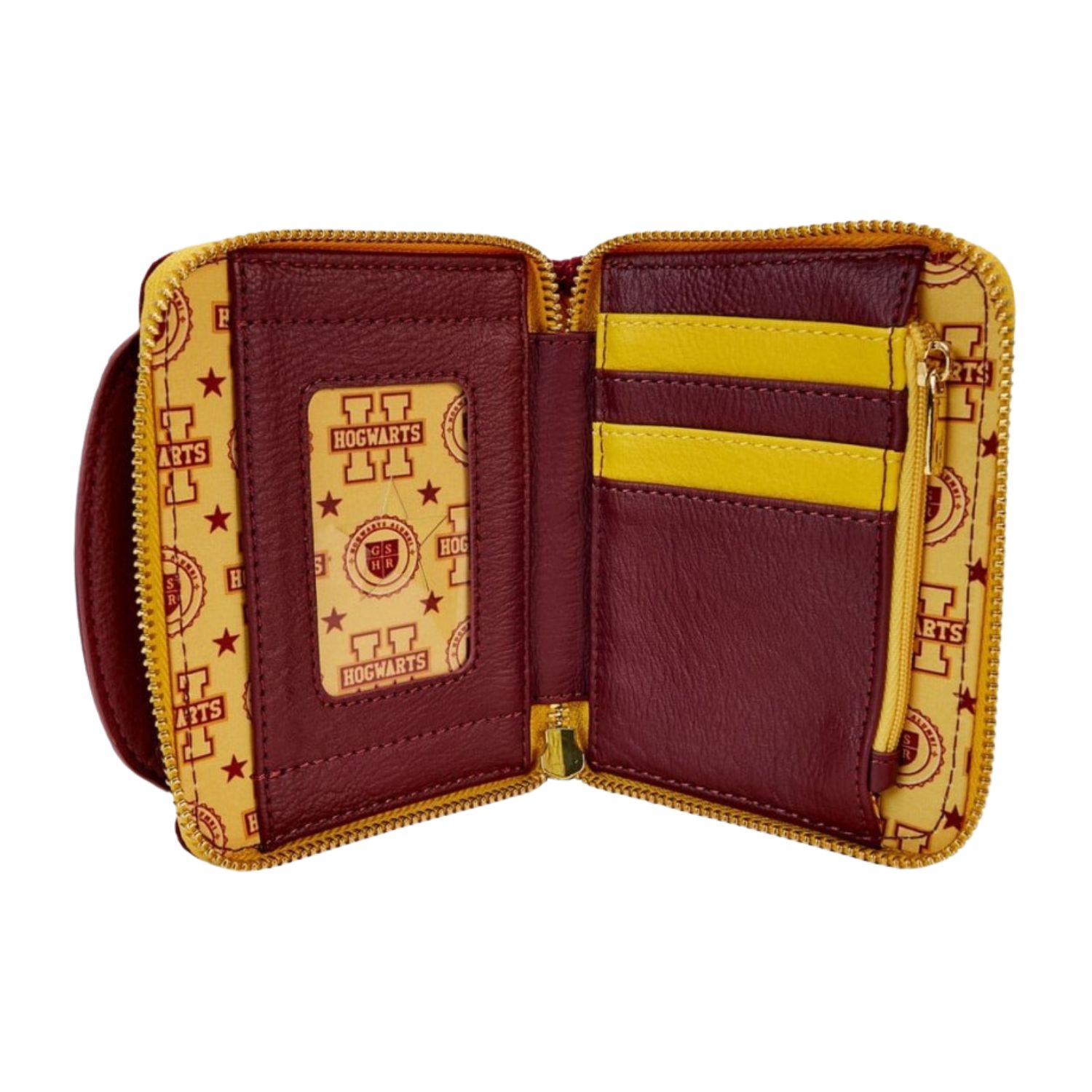 Ήρθε η ώρα να δείξετε την υπερηφάνεια του κοιτώνα σας, απόφοιτοι του Hogwarts! Το πορτοφόλι Loungefly Harry Potter Gryffindor Varsity Zip Around Wallet θα κρατήσει τα απαραίτητα σας ασφαλή και θα εκπροσωπήσει τον μάγο που κρύβετε μέσα σας με στυλ. Κατασκευασμένο από μάλλι, αυτό το πορτοφόλι αναπαριστά το κλασικό varsity jacket με ριγέ γιακά από vegan δέρμα, chenille patch, το σφραγίδα του Hogwarts, και το «Hogwarts» γραμμένο στην πίσω πλευρά. Ο σχεδιασμός αυτός αποτυπώνει την τολμηρή φύση του Gryffindor με χρυσές λεπτομέρειες πάνω στη μαρουν απόχρωση.