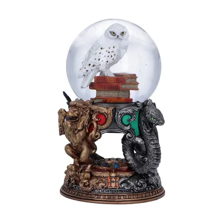Επίσημα Πιστοποιημένη Σφαίρα Χιονιού Harry Potter με την Hedwig! Ανακαλύψτε τον μαγικό κόσμο του Harry Potter με αυτή τη σφαίρα χιονιού, ύψους 18,5 cm. Η Hedwig, η πιστή χιονοπούλα του Harry, κάθεται πάνω σε ένα σωρό βιβλία μαγείας στο κέντρο της σφαίρας. Η βάση είναι λεπτομερώς διακοσμημένη με τα έμβληματα των τεσσάρων κοιτώνων του Hogwarts, Gryffindor, Slytherin, Hufflepuff και Ravenclaw. Κατασκευασμένη από υψηλής ποιότητας ρητίνη και χειροποίητα ζωγραφισμένη, αυτή η σφαίρα χιονιού αποτελεί την τέλεια προσθήκη για κάθε συλλογή Harry Potter.