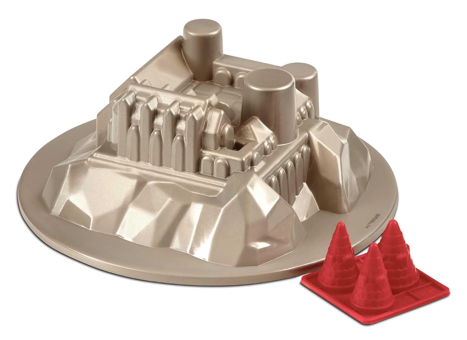 Το σετ περιλαμβάνει μία βαριάς ποιότητας, χυτή αλουμινένια φόρμα με αντικολλητική επίστρωση και περίτεχνη αποτύπωση του κάστρου, σχεδιασμένη ώστε να προσφέρει άψογα αποτελέσματα ακόμη και με ελάχιστη εμπειρία στη ζαχαροπλαστική. Μαζί θα βρείτε ένα εύκαμπτο καλούπι σιλικόνης για τους πύργους του κάστρου, αλλά και ένα βιβλίο συνταγών γεμάτο με ιδέες και τεχνικές διακόσμησης. Το βιβλίο περιλαμβάνει πέντε γευστικές συνταγές: παραδοσιακό sponge cake, Maple & Pecan, Stem Ginger, Chocolate Fudge και Carrot & Orange, καλύπτοντας όλα τα γούστα.