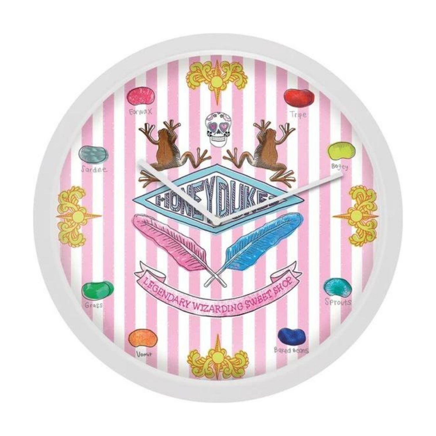 Φέρτε την ατμόσφαιρα του διάσημου καταστήματος Honeydukes στον κόσμο του Χάρι Πότερ με αυτό το εντυπωσιακό ρολόι τοίχου. Με διάμετρο 30.5cm, το ρολόι διαθέτει γυάλινη πρόσοψη και βελτιωμένους δείκτες από αλουμίνιο, προσφέροντας μια premium εμφάνιση στον χώρο σας. Είναι ιδανικό για κάθε φαν της σειράς και συσκευάζεται σε κλειστό κουτί για ασφαλή αποστολή.