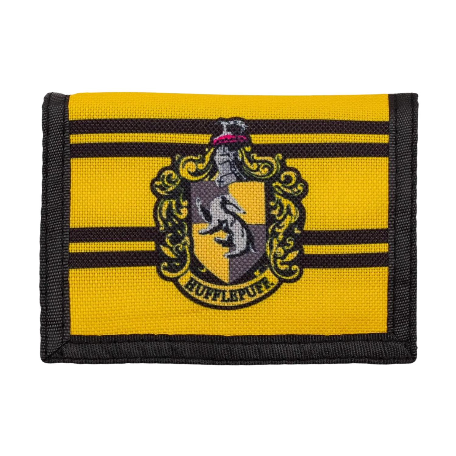 Το πορτοφόλι Harry Potter Hufflepuff Nylon TriFold είναι κατασκευασμένο από κίτρινο πολυεστέρα και διαθέτει κλείδωμα ασφαλείας για τα πολύτιμα αντικείμενά σου.