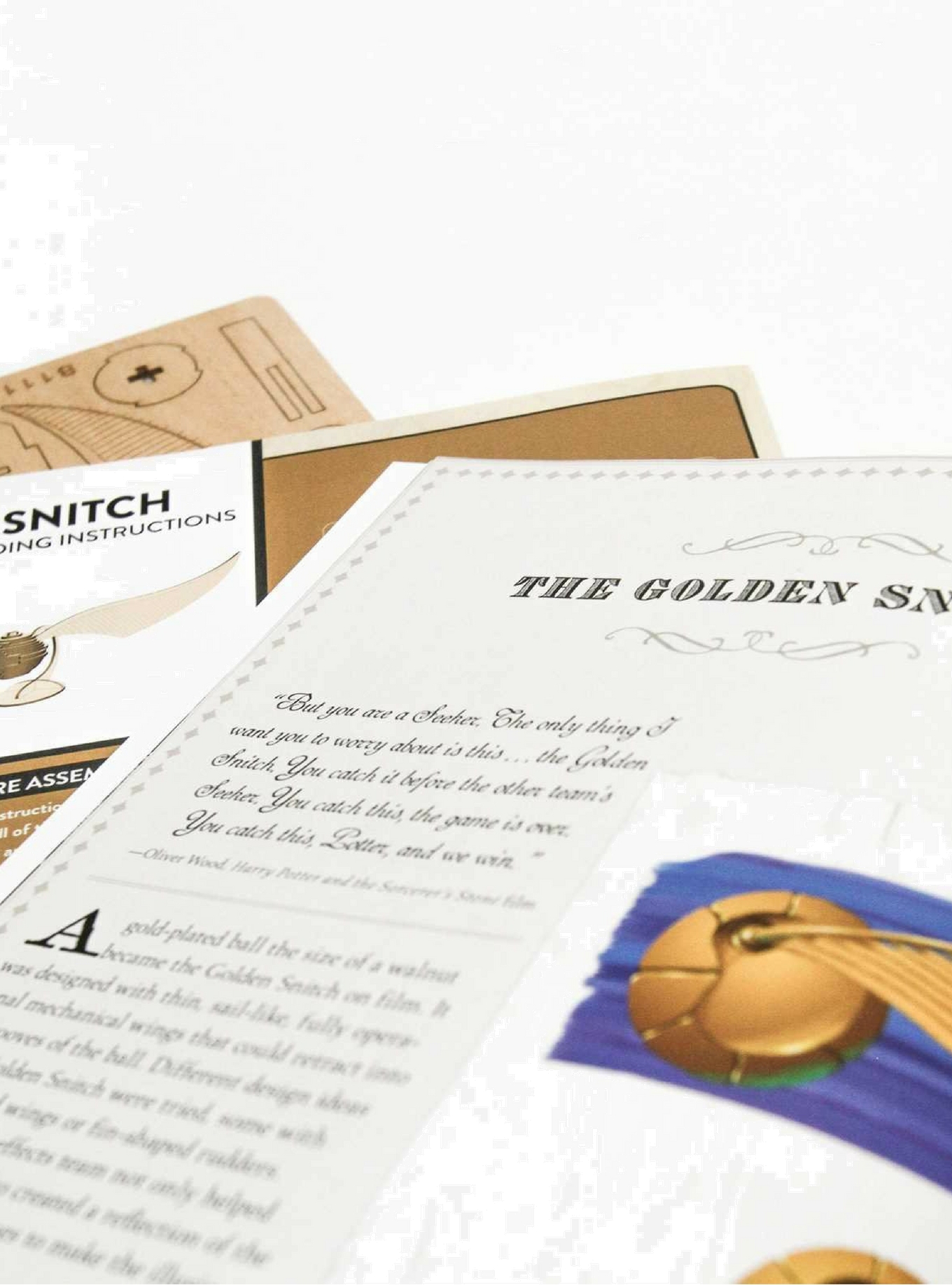 Μία κοντινή ματιά στο αγαπημένο άθλημα των μάγων, του Quidditch, με αυτό το 3D Wood Model Kit της Χρυσής Μπάλας. - Επίσημο προϊόν Harry Potter - Περιλαμβάνει " A Golden Snitch Book", Step- By-Step οδηγίες, Ιδέες διακόσμησης και χρωματισμού - Imported