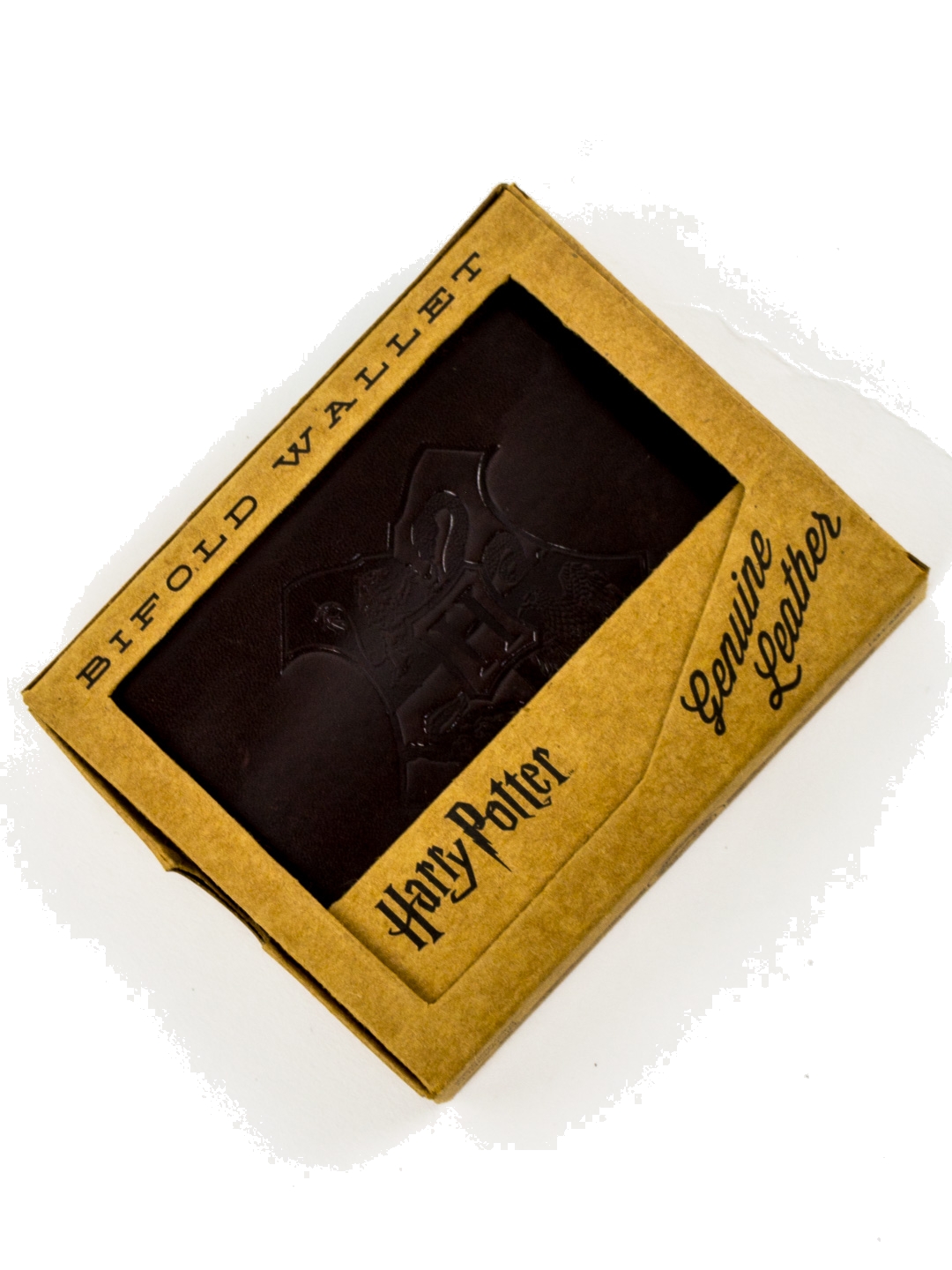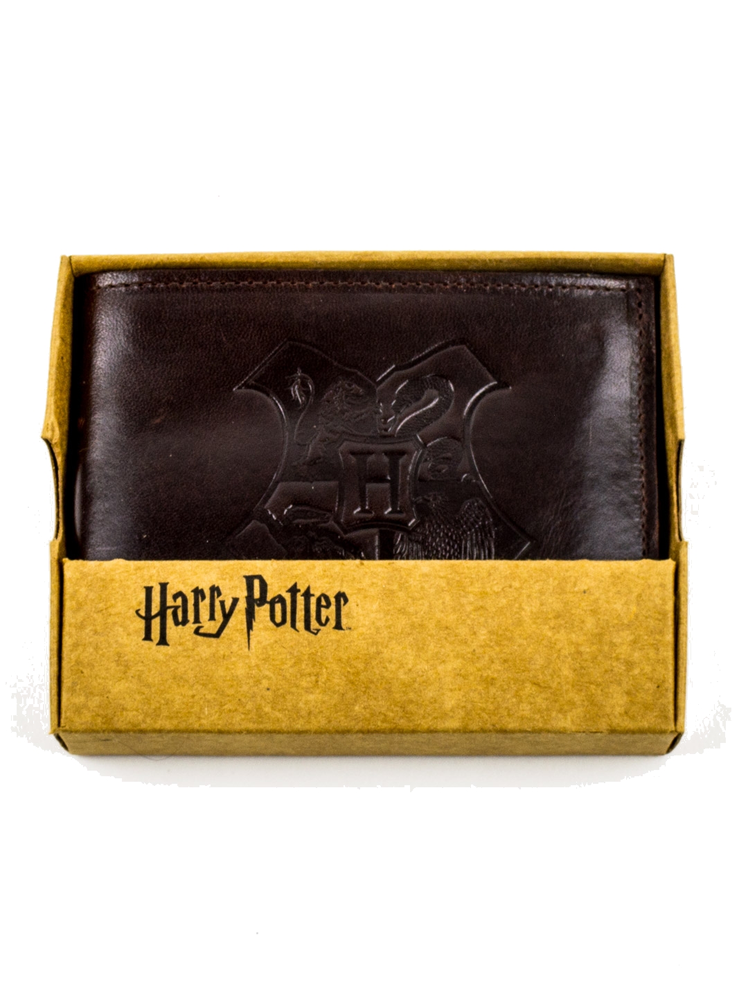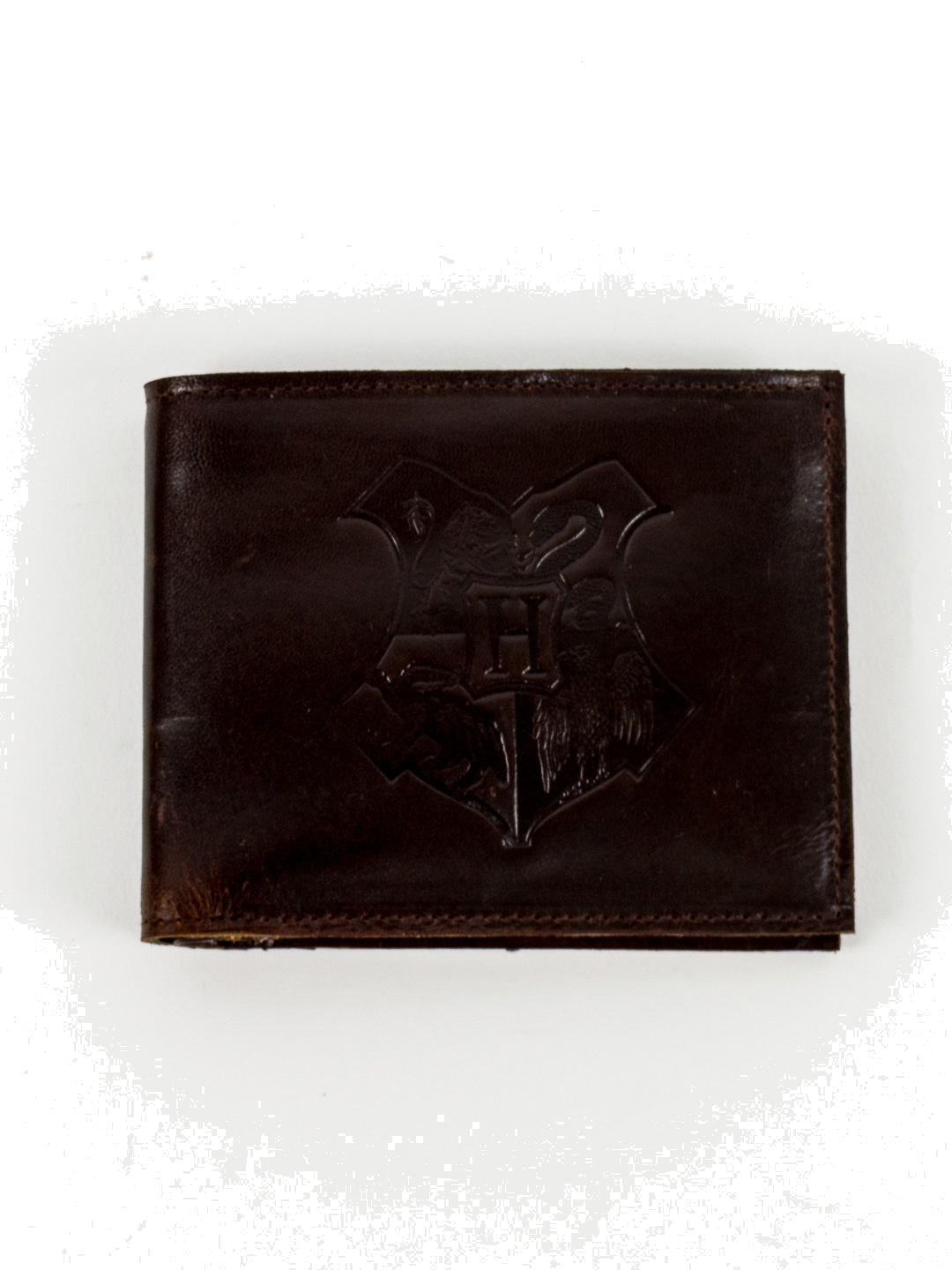 Ένα κλασικό δερμάτινο καφέ πορτοφόλι με το σήμα του Hogwarts. Κλασικό και μαγικό. - Επίσημο προϊόν Harry Potter - Leather - Imported