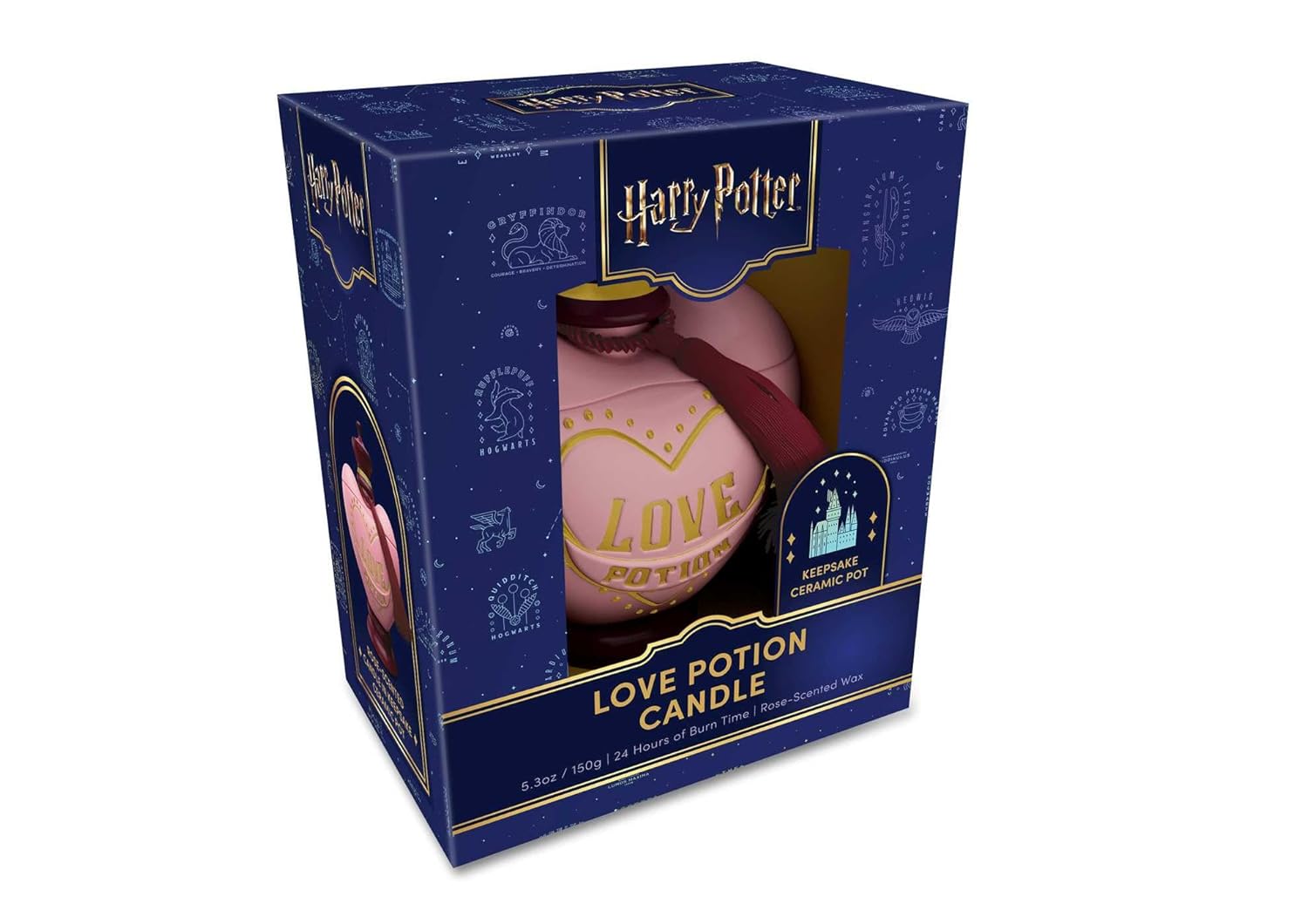 Το Αρωματικό Κερί Harry Potter Love Potion Candle φωτίζει το χώρο σας με ένα κερί αρωματισμένο με άρωμα τριαντάφυλλου από υψηλής ποιότητας σόγια, τοποθετημένο σε συλλεκτικό κεραμικό δοχείο εμπνευσμένο από το μπουκάλι Love Potion των αγαπημένων ταινιών Harry Potter™.