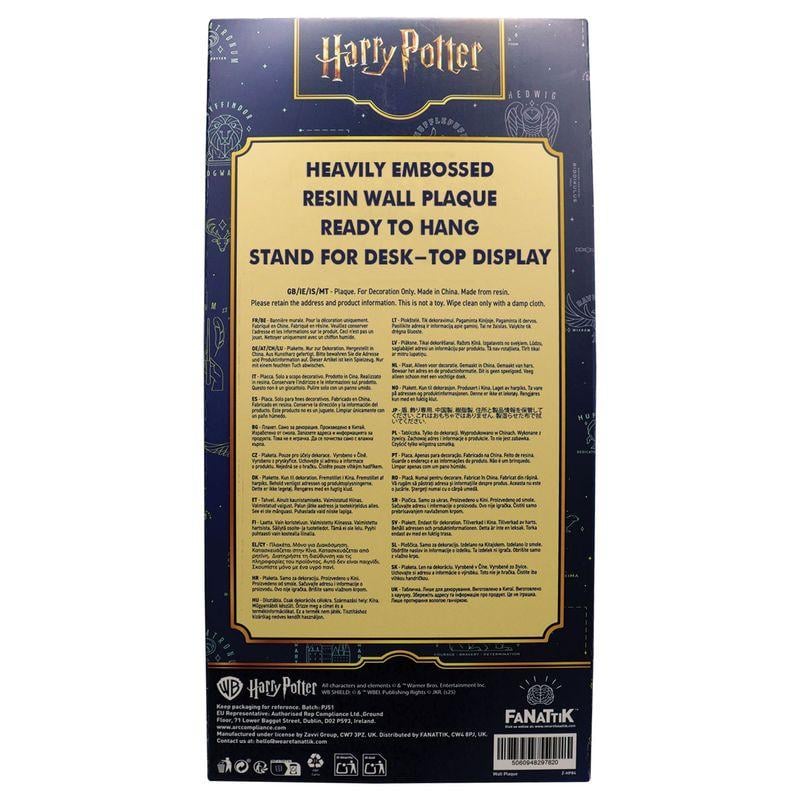 Αναπαριστώντας με εντυπωσιακή λεπτομέρεια το stained-glass σχέδιο, αυτό το επίσημα αδειοδοτημένο διακοσμητικό είναι κατασκευασμένο από ανθεκτική ρητίνη (resin) και μπορεί να τοποθετηθεί είτε στον τοίχο είτε σε επιφάνεια, χάρη στο ενσωματωμένο γαντζάκι και τη βάση στήριξης στο πίσω μέρος. Ένα ιδανικό συλλεκτικό κομμάτι για κάθε φαν του Harry Potter.