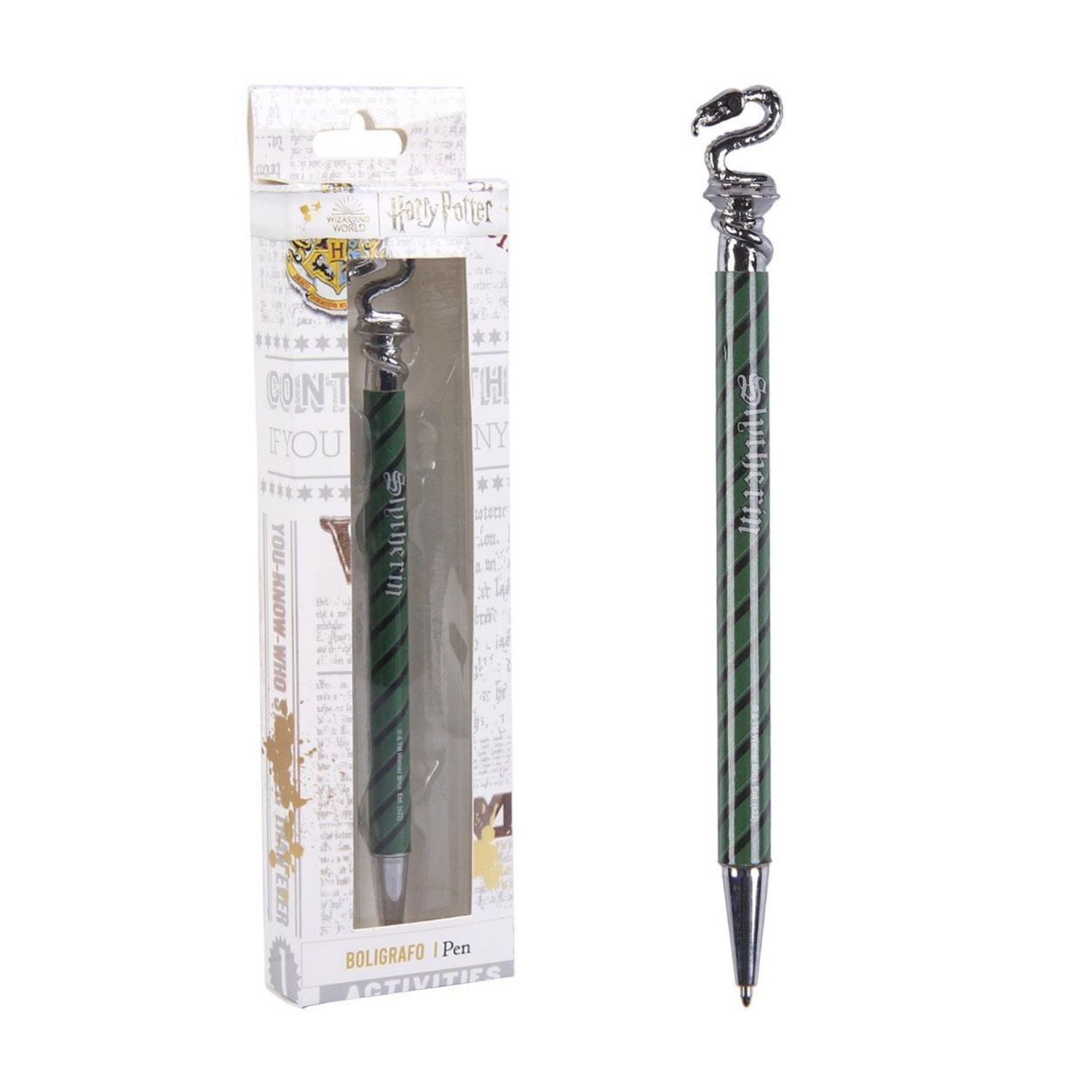 Από τα χέρια της Cerdá σας παρουσιάζουμε αυτό το υπέροχο στυλό Slytherin, τον κοιτώνα του Hogwarts που ιδρύθηκε από τον Salazar Slytherin. Αυτό το στυλό έχει κατασκευαστεί από την Cerdá με υλικά υψηλής ποιότητας και είναι το ιδανικό αξεσουάρ για κάθε φαν της σειράς Harry Potter. Δώστε μια μαγική πινελιά στη γραφή σας με αυτό το ξεχωριστό στυλό, το οποίο αποτελεί έναν μοναδικό φόρο τιμής στον οίκο της φιλοδοξίας και της αποφασιστικότητας.