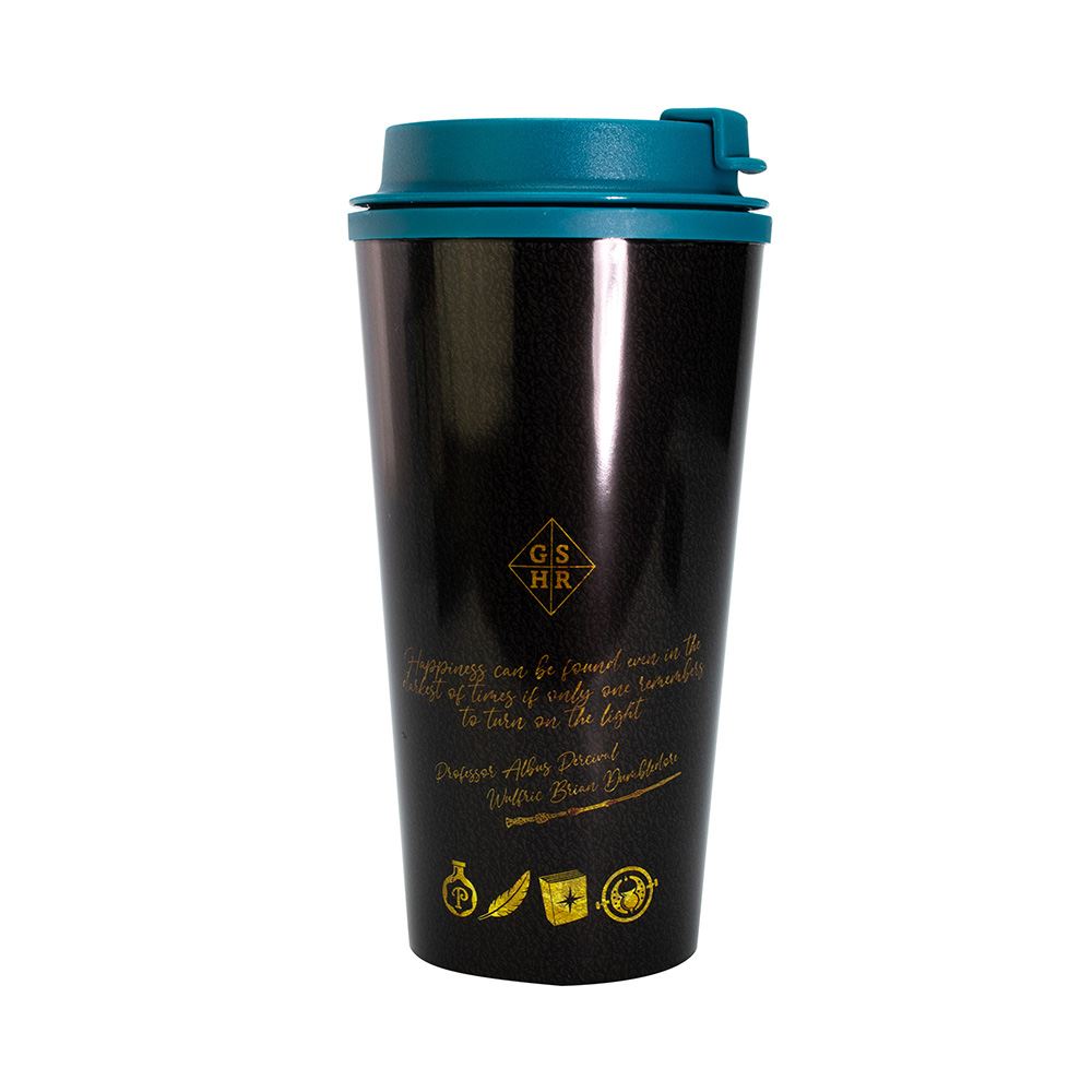 Πιάστε την κλασική κούπα με το έμβλημα του Hogwarts και γεμίστε την με βουτυρόμπυρα, το απόλυτο ποτό για κάθε μάγο. Αυτή η κούπα ταξιδιού 450ml διαθέτει διπλό τοίχωμα για θερμοκρασία, καπάκι με σπείρωμα και καπάκι με ανακλινόμενο στόμιο για να αποφεύγετε τις διαρροές. Η λαστιχένια βάση εξασφαλίζει ότι η κούπα δεν θα γλιστρήσει.