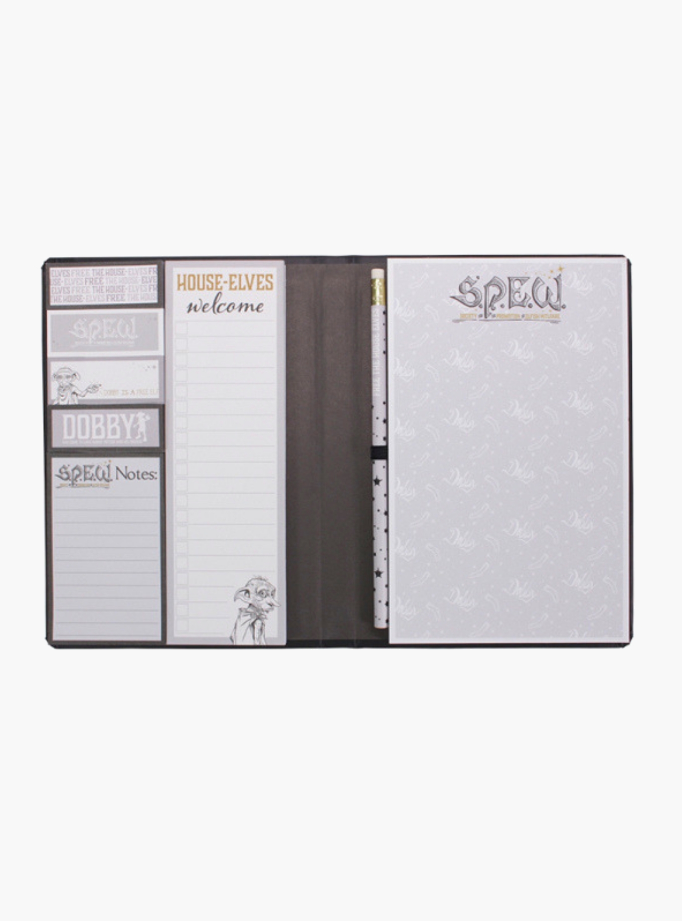 - Περιλαμβάνει τετράδιο A5 με θέμα τον Dobby και το S.P.E.W.