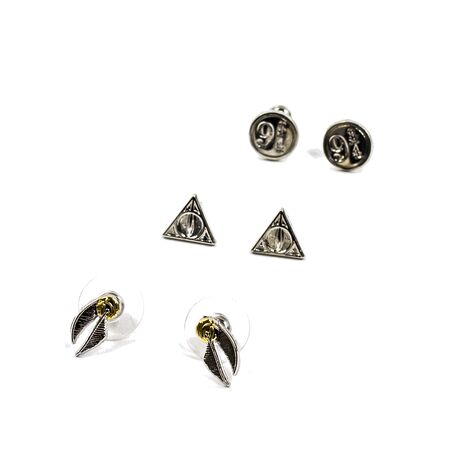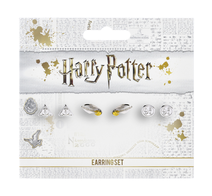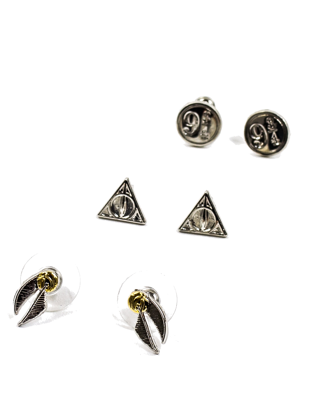 - Σετ 3 σκουλαρικιών stud με σχέδια Deathly Hallows, Platform 9 3/4, Golden Snitch