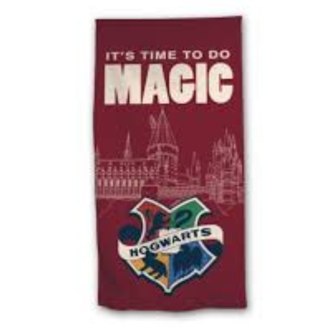 Η πετσέτα θαλάσσης Harry Potter με το έμβλημα "Hogwarts" και το μήνυμα "It's Time to do Magic" έχει διαστάσεις 70x140 cm και είναι φτιαγμένη από 100% βαμβάκι. Μπορεί να πλυθεί στο πλυντήριο στους 60°C και να στεγνωθεί στο στεγνωτήριο.