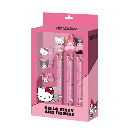 Ανανεώστε τη συλλογή σας με το υπέροχο Σετ Γραφικής Ύλης Hello Kitty, που συνδυάζει λειτουργικότητα με μοναδικό στυλ. Το πακέτο περιλαμβάνει 3 eternal pencils, σχεδιασμένα με μεταλλική μύτη που γράφει ομαλά χωρίς μελάνι ή μολύβι και χωρίς ανάγκη ξαναγεμίσματος, καθώς και 3 γόμες και έναν ξυλομπογιά. Κάθε μολύβι διαθέτει μια περιστρεφόμενη 3D φιγούρα Hello Kitty στο πάνω μέρος, προσθέτοντας μια χαριτωμένη και συλλεκτική πινελιά. Όλα έρχονται σε μια θεματική συσκευασία δώρου από χαρτόνι, ιδανική για καθημερινή χρήση ή για να χαρίσετε σε έναν λάτρη της Hello Kitty.
