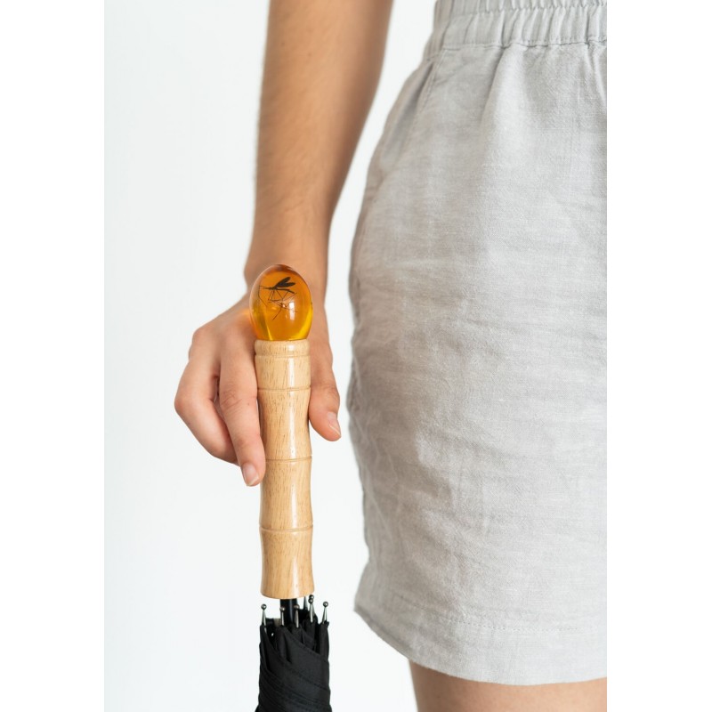 Αυτή η ομπρέλα Jurassic Park είναι το ιδανικό αξεσουάρ για τους λάτρεις της ταινίας, καθώς είναι εμπνευσμένη από το μπαστούνι του John Hammond. Κατασκευασμένη από πολυεστέρα, διαθέτει στιβαρό σκελετό από μέταλλο και PVC για ανθεκτικότητα. Η ξύλινη λαβή της διαθέτει ένα διακοσμητικό κουνούπι από ρητίνη και ένα αυτόματο σύστημα ανοίγματος, προσφέροντας ευκολία και μοναδικό στυλ. Όταν είναι ανοιχτή, έχει εντυπωσιακές διαστάσεις με διάμετρο 105 εκ. και ύψος 90 εκ. Πρόκειται για ένα επίσημο προϊόν Jurassic Park που συνδυάζει λειτουργικότητα με εμβληματικό σχέδιο.