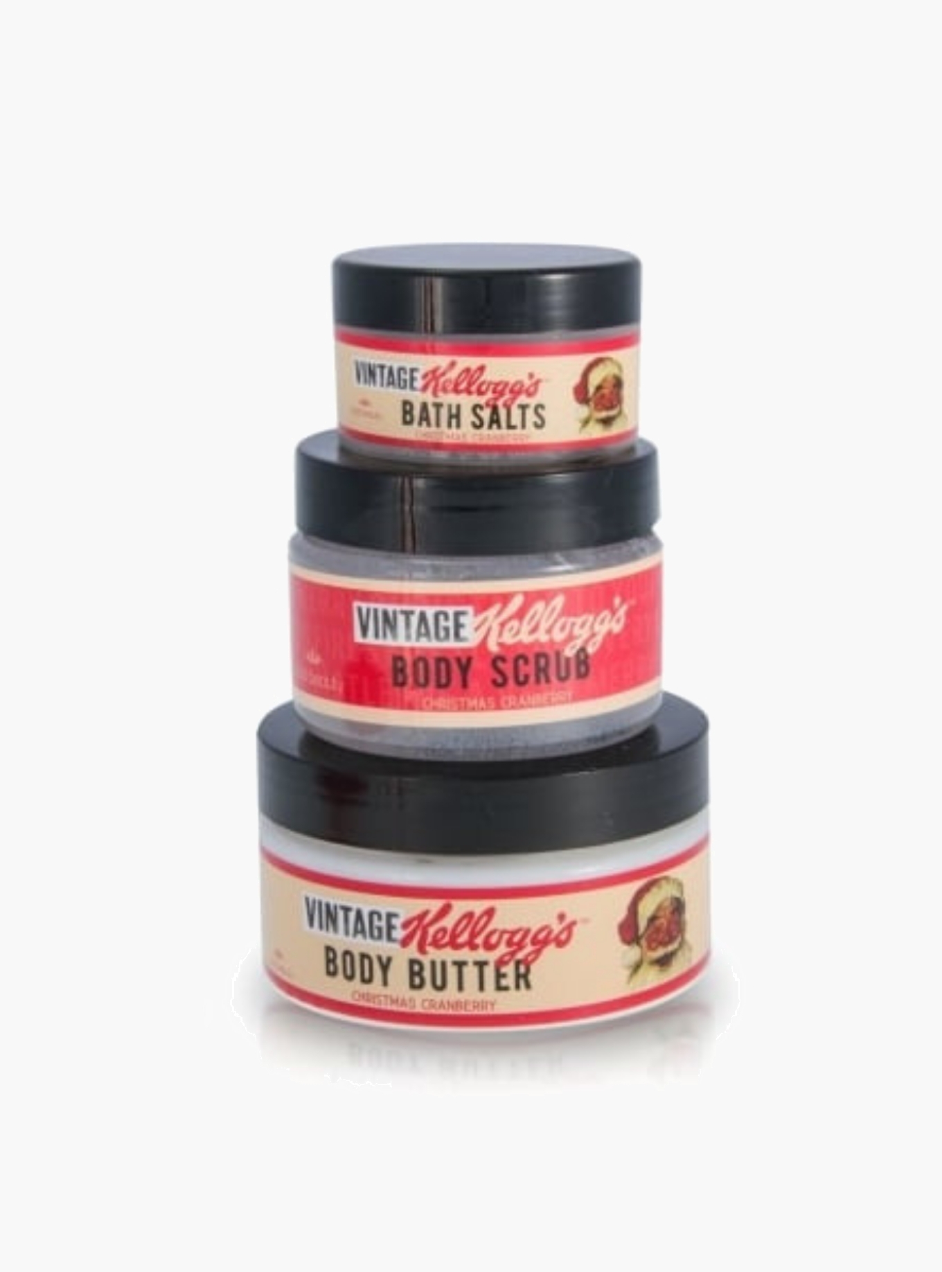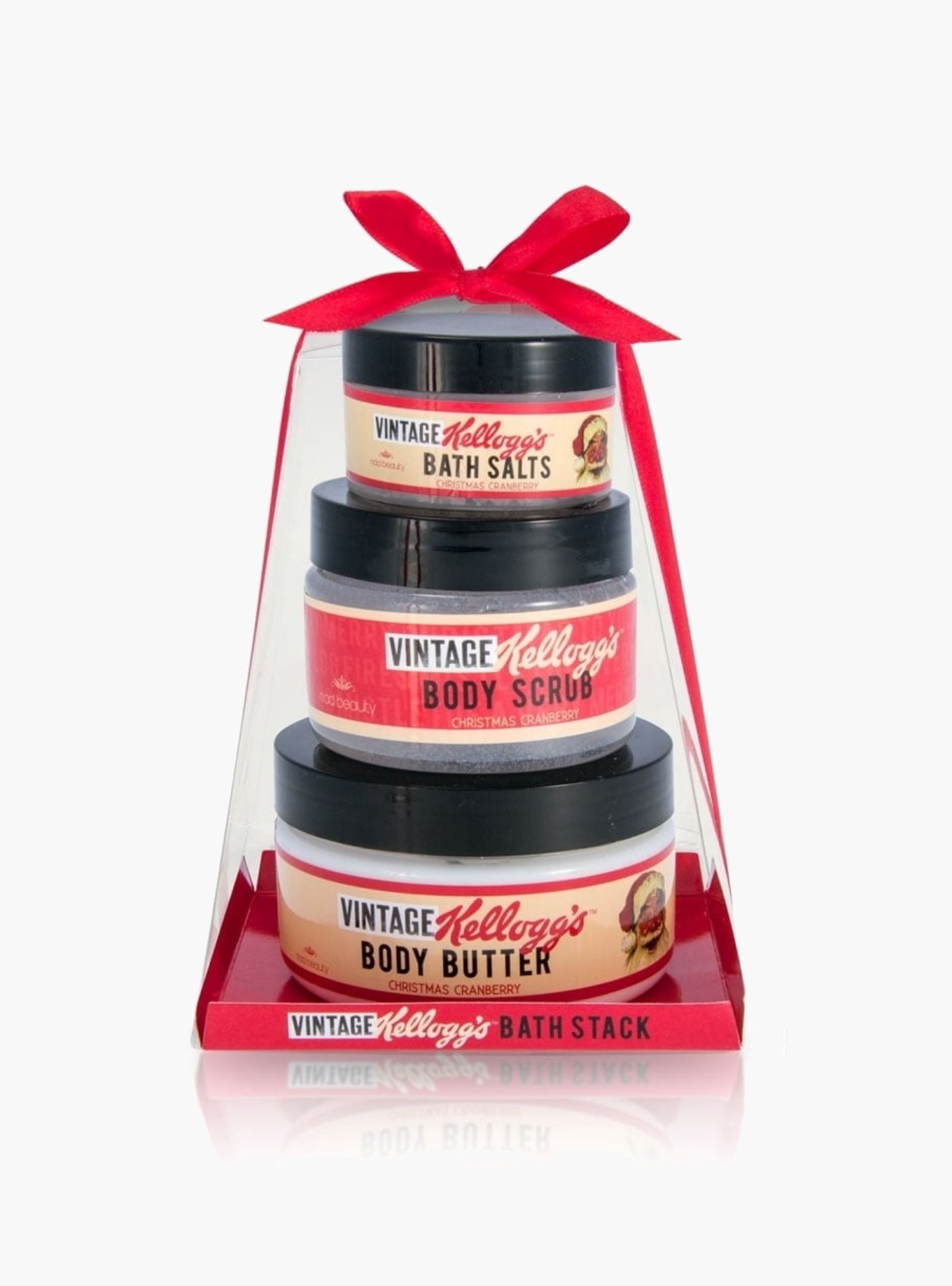 Το Kellogg's Vintage Bath Stack είναι το τέλειο δώρο για τους λάτρεις της διαχρονικής τέχνης και της φροντίδας του σώματος. Εμπνευσμένο από το διάσημο και εικονικό έργο τέχνης του Κόρνφλεϊκς Άγιου Βασίλη, που παρήγγειλε η Kellogg’s από τον διάσημο Αμερικανό καλλιτέχνη Norman Rockwell τη δεκαετία του 1950, αυτό το σετ περιποίησης φέρει μια γιορτινή αίσθηση και άρωμα. Η συσκευασία σε παρουσίαση με κορδέλα κάνει το σετ το τέλειο δώρο για τις γιορτές. Το σετ περιλαμβάνει: