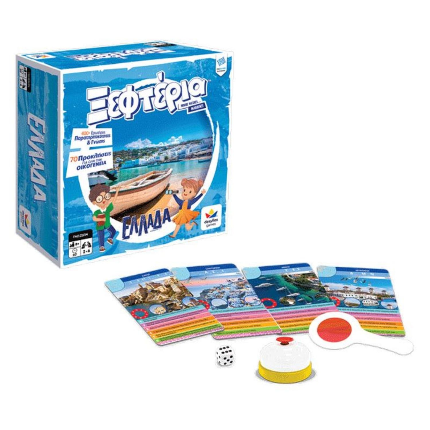 Μάθετε ανακαλυπτικά για τα αγαπημένα σας θέματα με το παιχνίδι Ξεφτέρια: Ελλάδα! Όλοι οι παίκτες παίζουν ταυτόχρονα, ρίχνουν το ζάρι, διαβάζουν δυνατά την ερώτηση και ψάχνουν την κάρτα για να δώσουν τη σωστή απάντηση πριν τους άλλους. Θα αντιμετωπίσετε ερωτήσεις παρατηρητικότητας, αναγραμματισμού ή τον Κύκλο. Με 5 διαφορετικά είδη ερωτήσεων, η διασκέδαση δεν τελειώνει ποτέ. Ανακαλύψτε πόσο ξεφτέρι είστε πραγματικά!
