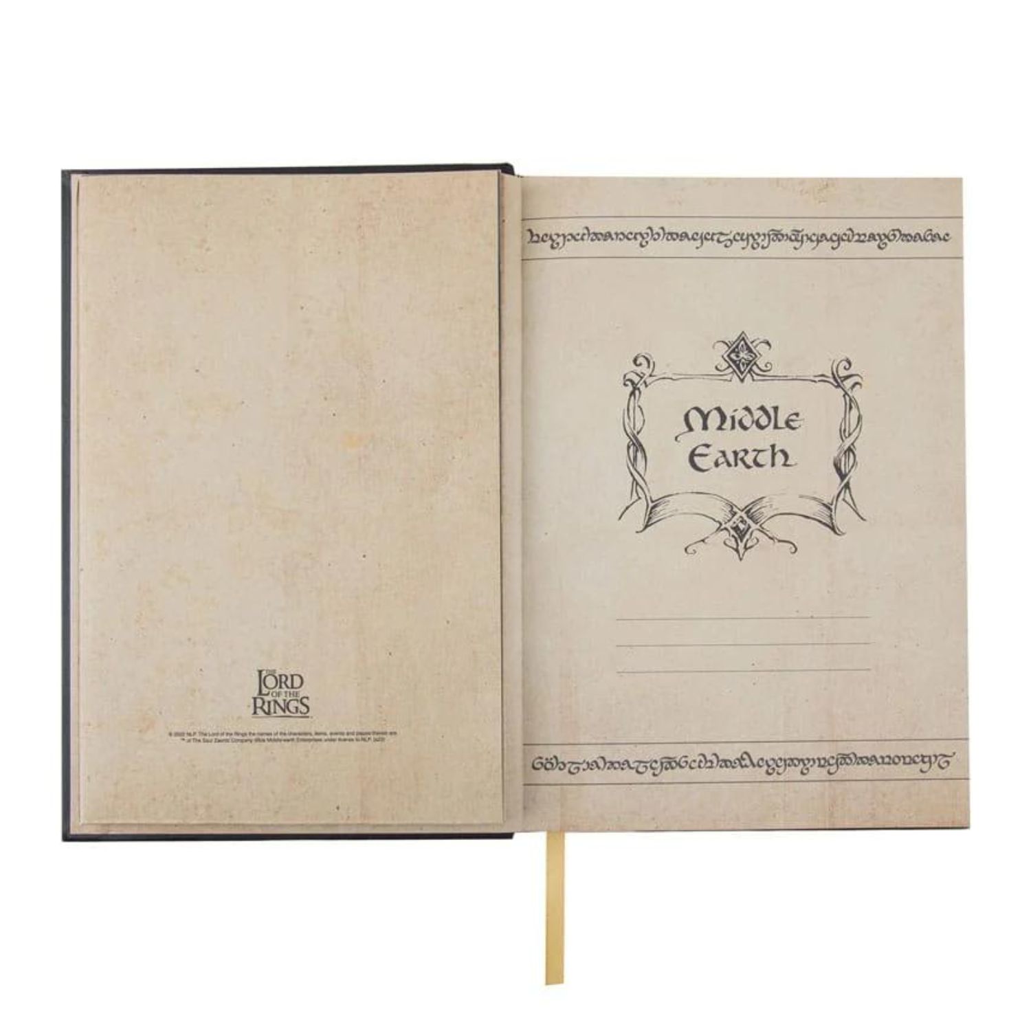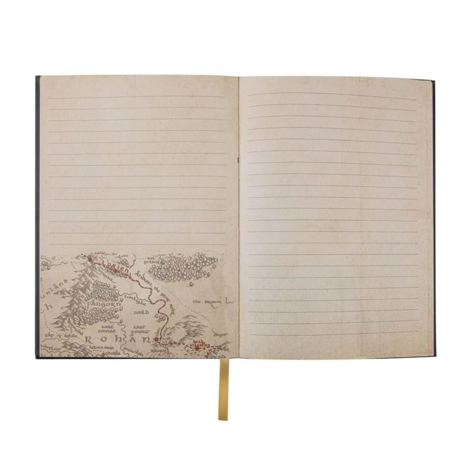 Στο εσωτερικό θα βρεις μια αποσπώμενη αναπαράσταση του Χάρτη της Middle Earth, όπως εμφανίζεται στις ταινίες, με χρυσή σφράγιση στο εξώφυλλο και γραμμωτές σελίδες που συνοδεύονται από μια βήμα-βήμα εικονογράφηση της πορείας της ομάδας στην κάτω αριστερή γωνία κάθε σελίδας. Ήρθε η ώρα να γράψεις με χαρά τις σκέψεις σου σε αυτό το σπάνιο σημειωματάριο.