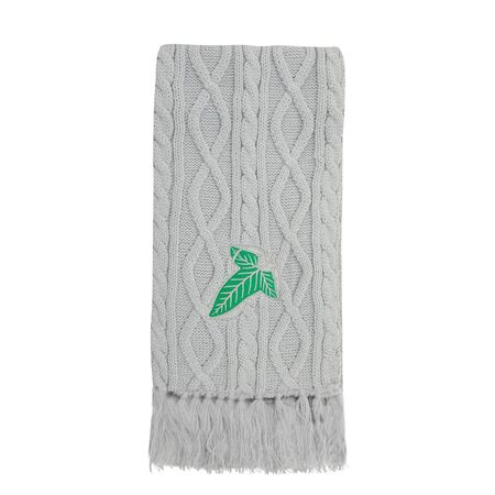 Ανακαλύψτε την κομψότητα και τη μαγεία των Ξωτικών με το Κασκόλ Lord Of The Rings Leaf Of Lorien. Δημιουργημένο σε μια διακριτική απόχρωση γκρι, αυτό το κασκόλ ενσωματώνει την κομψότητα και μυστηριώδη ατμόσφαιρα των ξωτικών. Στη μία άκρη του κασκόλ, το λεπτό πράσινο ανάγλυφο φύλλο του Λωριέν αποκαλύπτεται, ενώ στην άλλη άκρη, ένας κύκλος λέξεων, αριστοτεχνικά υφασμένος στην κομψή γραφή Σίνταριν, τη γλώσσα των Ξωτικών, αφηγείται μια ιστορία γεμάτη σοφία και μυστήριο.