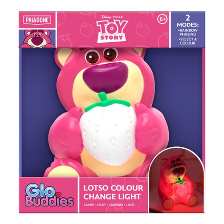 Φωτίστε τον χώρο σας με αυτό το φωτιστικό Lotso που αλλάζει χρώματα. Αυτή η 3D φιγούρα, ύψους 16 εκ. (6,2"), έχει σχήμα του Lots-o'-Huggin' Bear από την ταινία Toy Story. Η φράουλα που κρατάει στην αγκαλιά του ανάβει όταν το ανάψετε, προσφέροντας μια απαλή λάμψη σε οποιονδήποτε χώρο. Επιλέξτε ανάμεσα σε χρώματα του ουράνιου τόξου για την αγαπημένη σας φάση φωτισμού. Φορτίστε το φωτιστικό σας με 2x AA μπαταρίες (δεν περιλαμβάνονται) - χωρίς καλώδια. Το φωτιστικό Lotso είναι ο τέλειος νυχτερινός σύντροφος για το γραφείο, το ράφι ή το κομοδίνο σας.