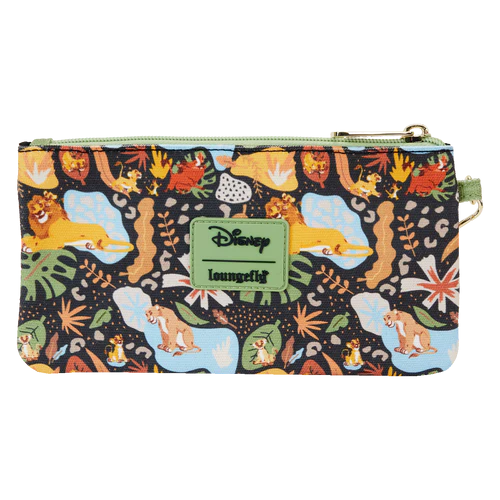 Απολαύστε την αφρικανική σαβάνα με το Loungefly Lion King 30th Anniversary AOP Canvas Wristlet. Αυτό το αξεσουάρ διαθέτει ζωηρό all-over print με τους αγαπημένους χαρακτήρες της ταινίας σε μαύρο φόντο. Ψάξτε μέσα από τα φύλλα και τη βλάστηση για να βρείτε τον Simba, τη Nala, τον Timon, τον Pumbaa και άλλους, κρυμμένους στο σχέδιο του πορτοφολιού. Στο εσωτερικό υπάρχουν τέσσερις θήκες για κάρτες και σημαντικά αντικείμενα, προσφέροντας αρκετό χώρο για τα απαραίτητα του σαφάρι σας.