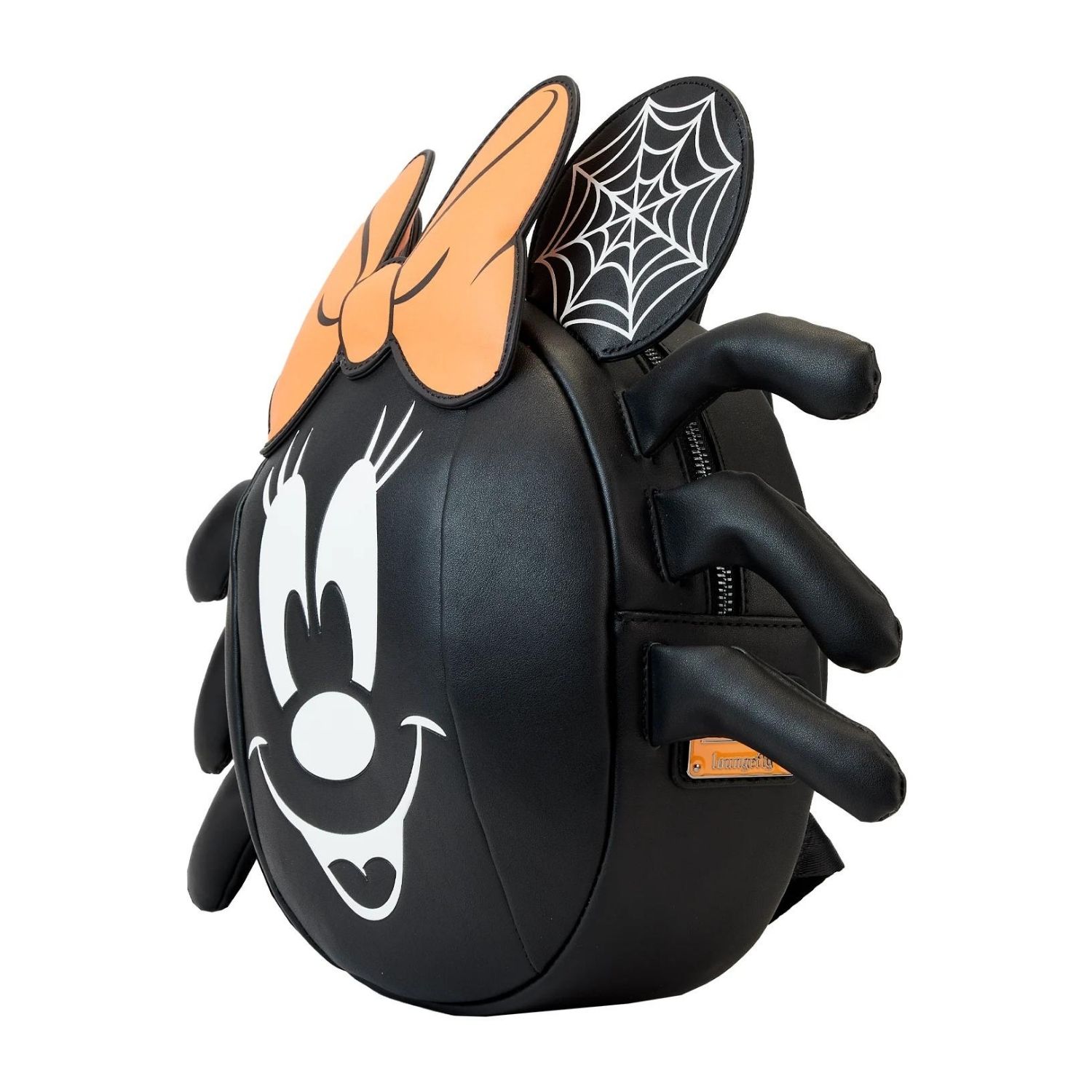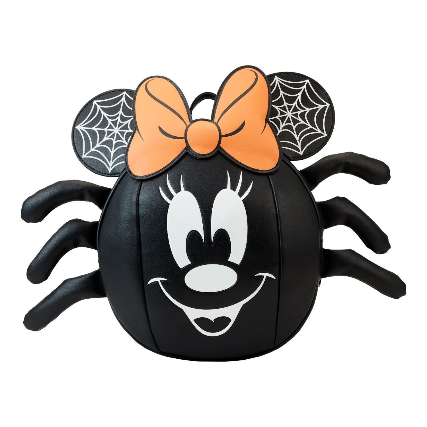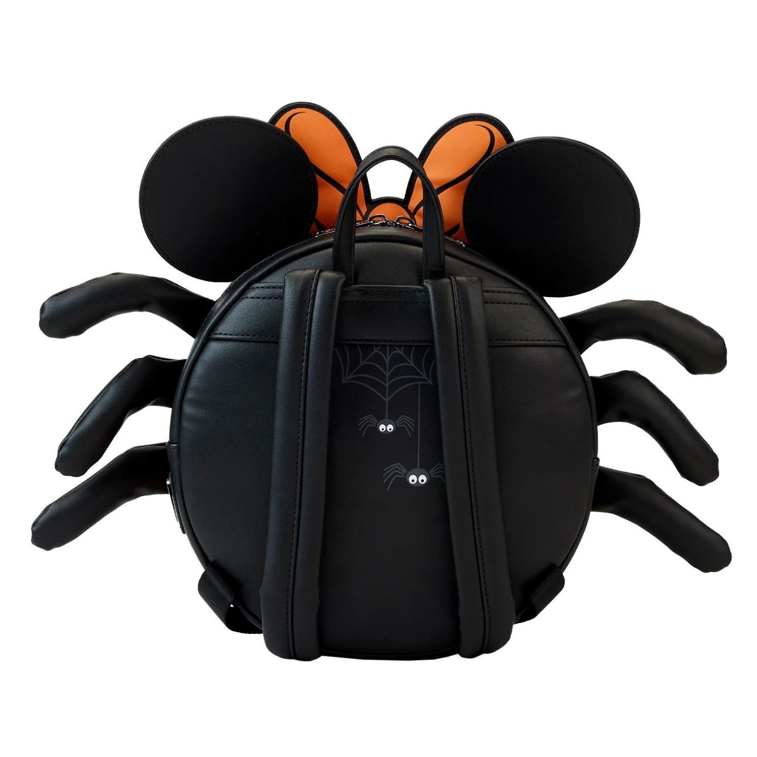 Γίνε φοβερά κομψός και τρομακτικός με αυτή την Loungefly Disney Minnie Mouse Spider Mini Backpack. Το σακίδιο σε σχήμα αράχνης διαθέτει στρογγυλεμένο εμπρόσθιο μέρος με το γλυκό πρόσωπο της Minnie Mouse, ενώ το πορτοκαλί φιόγκο της υψώνεται πάνω από την κορυφή. Τα πόδια της αράχνης προεξέχουν — τέσσερα σε κάθε πλευρά — και τα αυτιά με απλικέ έχουν ιστούς αράχνης που λαμπυρίζουν στο σκοτάδι. Στην πίσω πλευρά υπάρχει εκπληκτικό σχέδιο ιστού με δύο αράχνες να κρέμονται από νήματα. Ιδανικό για πνευματώδεις περιπέτειες και στοιχειωμένο στυλ παντού.