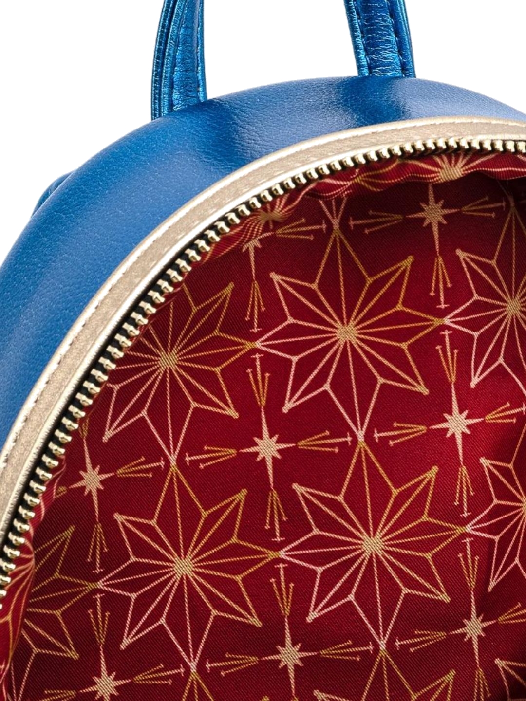 Inspired by the famous Marvel character, it's hard not to love this pretty Captain Marvel Cosplay design from Loungefly. - Officially licensed - Made from premium faux leather - Measures 27 cm H x 23 cm W x 11.5 cm D (approx) - Interior lined with matching faux leather and themed fabric - Vegan friendly - Imported