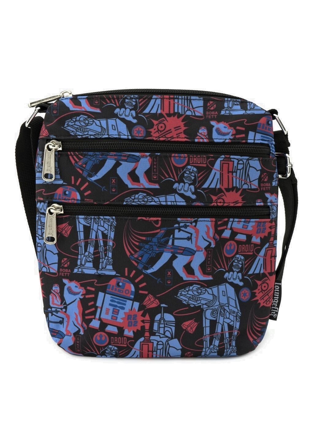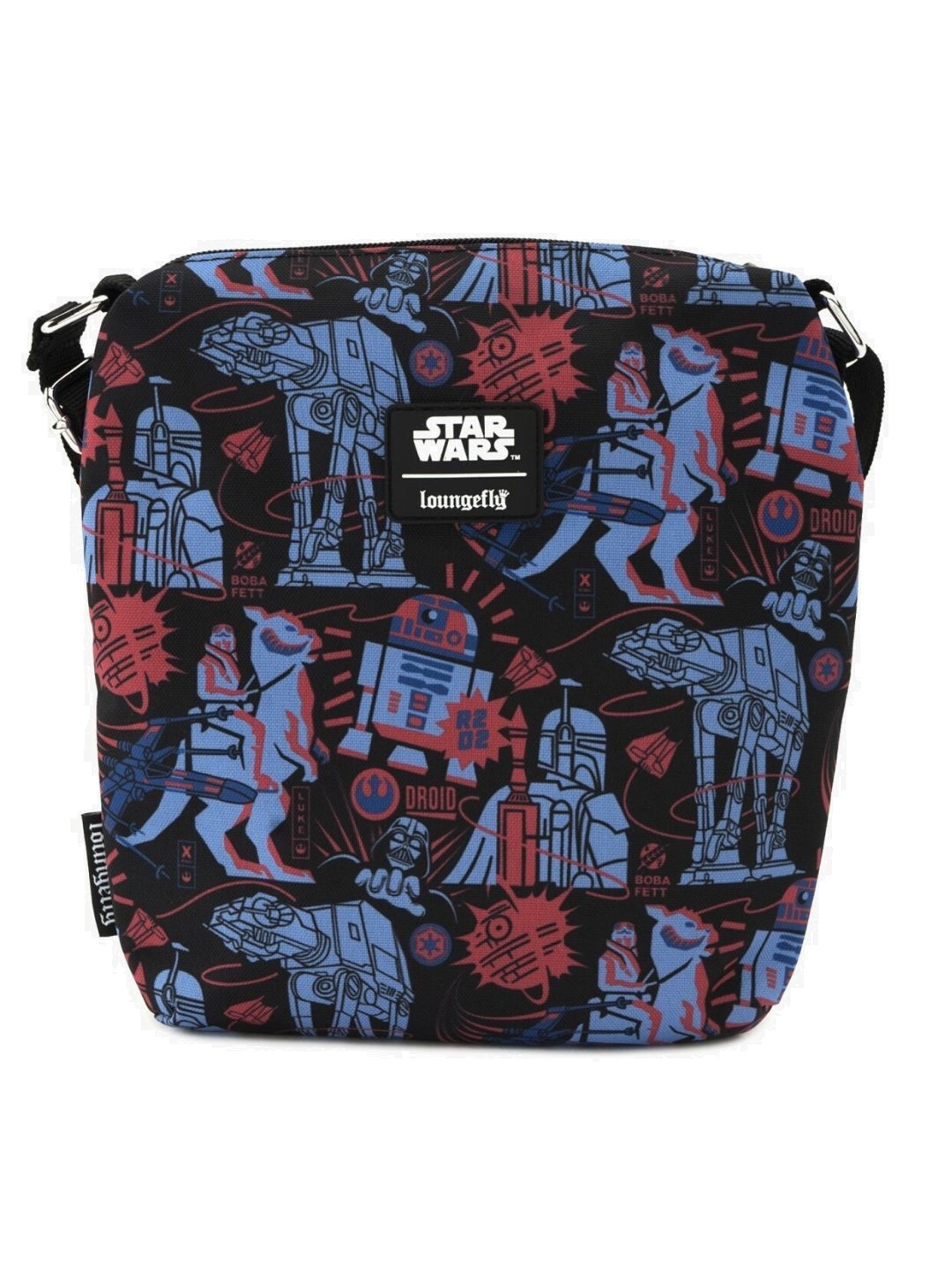 Αυτή η χαρακτηριστική τσάντα ταχυδρόμου από την Loungefly απεικονίζει όλους τους γνωστούς χαρακτήρες από το Star Wars! - Επίσημο προϊόν - 25 cm x 30 cm - Nylon - Imported