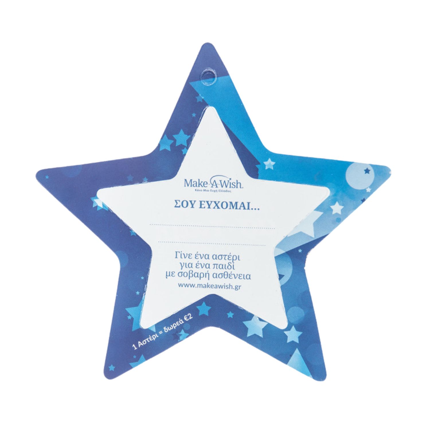 Αγοράζοντας τα αστέρια (αξίας 2€ το κάθε ένα), μπορείτε να συνεισφέρετε ουσιαστικά στην εκπλήρωση των ευχών και παράλληλα να λάβετε ως αναμνηστικό το Αστέρι της Ευχής!