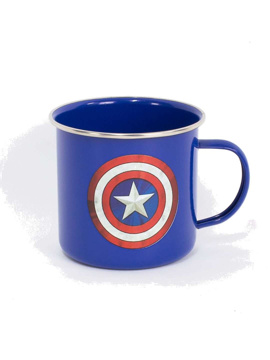 Μια μεταλλική κούπα με την χαρακτηριστική ασπίδα και λογότυπο του Captain America, σε ύφος Β' Παγκοσμίου πολέμου εμπνευσμένη από το ίδιο τον πρώτο Avenger. - Επίσημο προϊόν Marvel - Μεταλλική κούπα - Imported