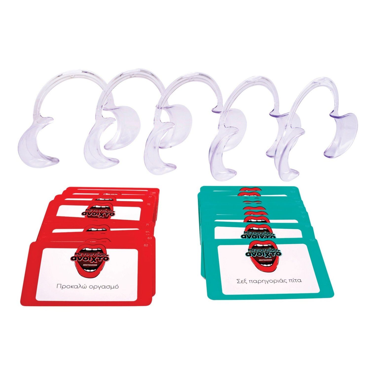 Το παιχνίδι που θα κάνει εσένα και την παρέα σου να κλάψετε από τα γέλια! Φόρεσε το ειδικό μασελάκι, τράβηξε μια κάρτα και προσπάθησε να πεις τη φράση που είναι γραμμένη στην κάρτα. Θα καταλάβει η ομάδα σου τι προσπαθείς να περιγράψεις; Ο χρόνος μετρά αντίστροφα και όλοι αναρωτιούνται τι λες. Όσες περισσότερες φράσεις μαντέψουν, τόσο πιο κοντά είστε στη νίκη! Η ομάδα με τις περισσότερες κάρτες στο τέλος του παιχνιδιού κερδίζει!