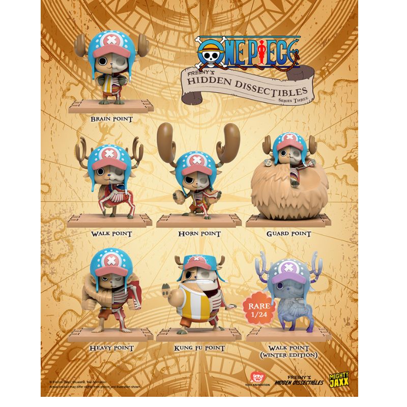 Μια ολόκληρη συλλογή από φιγούρες του Chopper με τη σειρά Freeny’s Hidden Dissectibles: One Piece (Series 3)! Ο Chopper αναλαμβάνει τη σκηνή με τη νέα σειρά συλλεκτικών One Piece blind box από τη Mighty Jaxx. Όλα τα σημεία μεταμόρφωσης είναι εδώ, αποσπασμένα με το χαρακτηριστικό στυλ αποτομής του Jason Freeny. Πρόκειται για μια μοναδική συλλογή παιχνιδιών του Chopper - μαζέψτε τα όλα και μείνετε συντονισμένοι για μια τεράστια έκπληξη που έρχεται!
