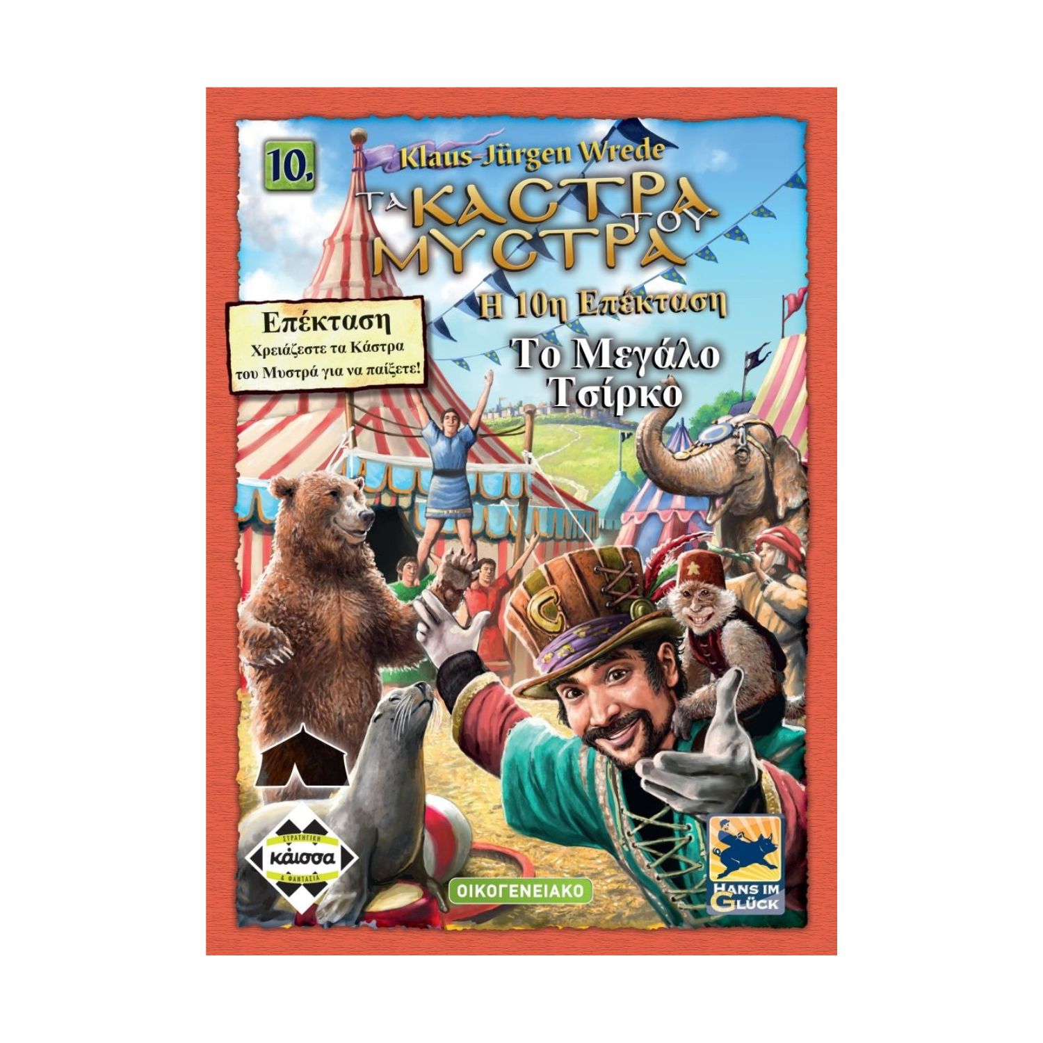 Το Τσίρκο έφτασε στο Μυστρά! Η μεγάλη Σκηνή έχει στηθεί και σας περιμένει! Ελάτε να θαυμάσετε τα άγρια ζώα, τους θηριοδαμαστές και τους παράτολμους ακροβάτες. Και καθώς παρακολουθείτε τα εντυπωσιακά τους νούμερα, κερδίστε πολλούς πόντους! Το μεγάλο Τσίρκο είναι η 10η επέκταση των Κάστρων του Μυστρά. Μπορεί να παιχτεί μαζί με το βασικό παιχνίδι είτε μόνη της, είτε σε συνδυασμό με άλλες επεκτάσεις. ΠΡΟΣΟΧΗ: Απαιτείται το βασικό παιχνίδι Περιεχόμενα: 20 πλακίδια, 16 δείκτες, 1 φιγούρα Τέντας Τσίρκου, 6 φιγούρες Θηριοδαμαστή, κανόνες
