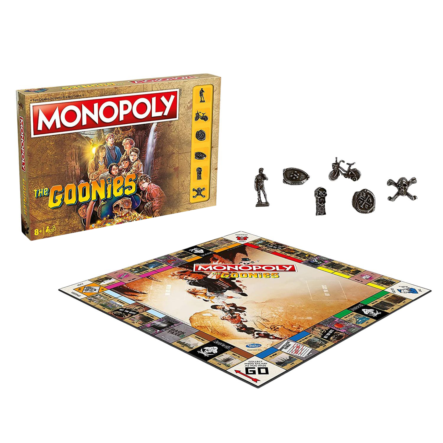 “Never say die!” με το MONOPOLY: The Goonies! Αναζητήστε τον κρυμμένο θησαυρό του One-Eyed Willy και αγοράστε, πουλήστε και ανταλλάξτε τοποθεσίες γύρω από την Αστόρια του Όρεγκον σε αυτή την έκδοση που βασίζεται στην κλασική ταινία περιπέτειας της δεκαετίας του '80! Παίξτε με συλλεκτικά κουπόνια όπως το κλειδί του Chester Copperport, το χρυσό ντουμπλόνι και άλλα αξέχαστα αντικείμενα, ενώ προσπαθείτε να είστε ο τελευταίος παίκτης με λάφυρα!