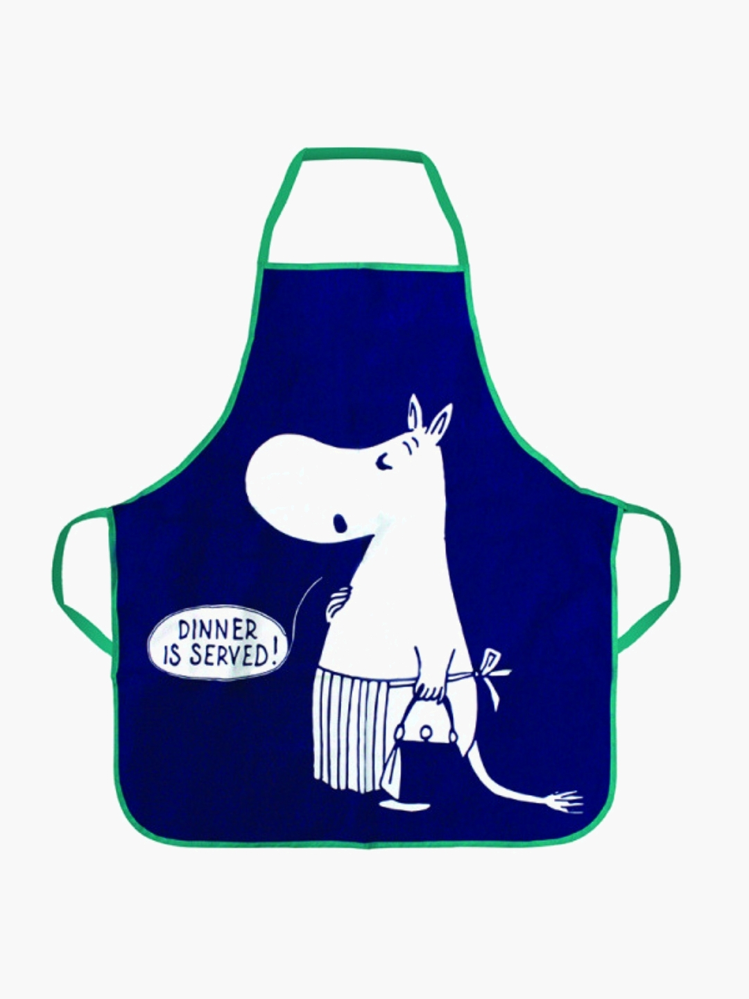 Φέρτε τη μοναδική γοητεία της οικογένειας Moomin σε κάθε σπίτι με αυτή την υπέροχη ποδιά ενηλίκων Moomin Mama, ιδανική για να προσθέσετε ένα διασκεδαστικό στοιχείο στα υπαίθρια μπάρμπεκιου, το σπιτικό ψήσιμο και την προετοιμασία γευμάτων. Διαθέτει μια κλασική εικονογράφηση της Moomin mama να λέει "Dinner is served" (Το δείπνο σερβίρεται), όπως σχεδιάστηκε αρχικά από την Tove Jansson σε σκούρο μπλε φόντο με πράσινη λεπτομέρεια, κορδόνια μέσης και θηλιά λαιμού. Επιπλέον, συσκευάζεται σε ένα σκούρο μπλε μεταλλικό κουτί τυπωμένο με το ίδιο σχέδιο της Moominmama, καθιστώντας το ένα ιδανικό δώρο για κάθε φαν των Moomin που αγαπάει τη μαγειρική.