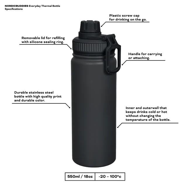 Το μπουκάλι έχει χωρητικότητα 550 ml, καθιστώντας το ιδανικό για καθημερινή χρήση ή περιπέτειες.