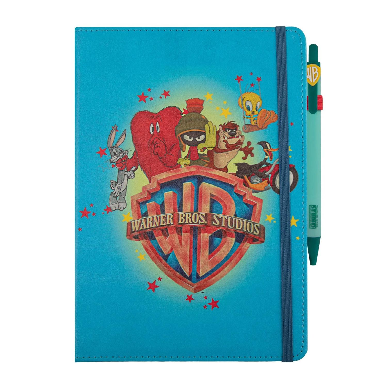Ξαναζήστε το παρελθόν και απολαύστε αγαπημένους χαρακτήρες με τα vintage λογότυπα των Warner Bros στο εξώφυλλο, στις σελίδες του τετραδίου και στο στυλό.